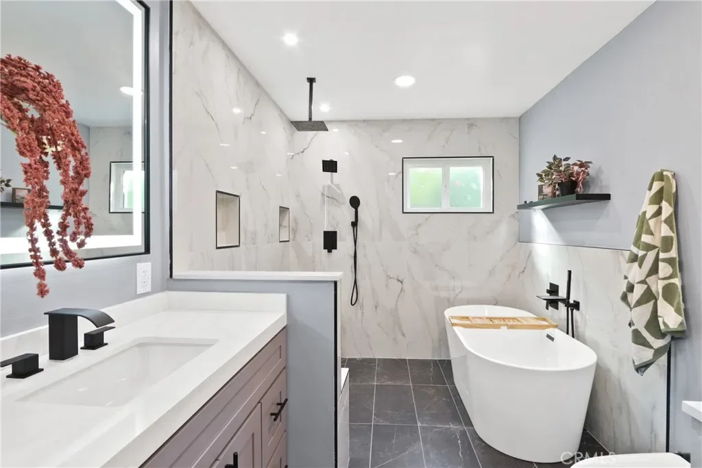 Both the kitchen and bathrooms have been completely remodeled with high-end finishes. Bathroom upgrades include Kohler fixtures, quartz countertops, illuminated mirrors, a luxurious walk-in shower with dual shower heads, and a large soaking tub designed for relaxation.