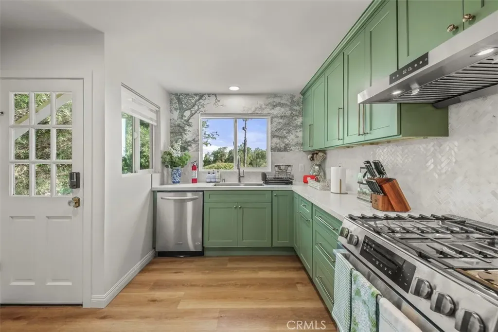 Outside, enjoy the privacy of a new vinyl fence and two exceptional outdoor spaces: a rear patio perfect for entertaining and an additional rooftop patio above the garage, offering breathtaking views of city lights and Catalina Island on clear days.