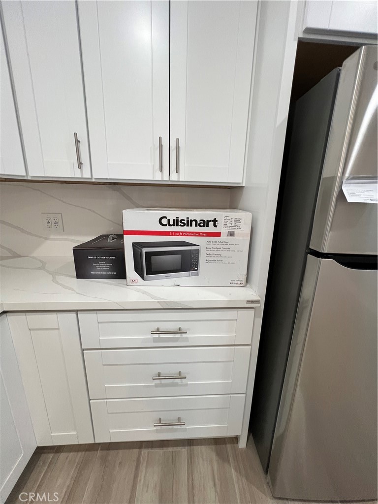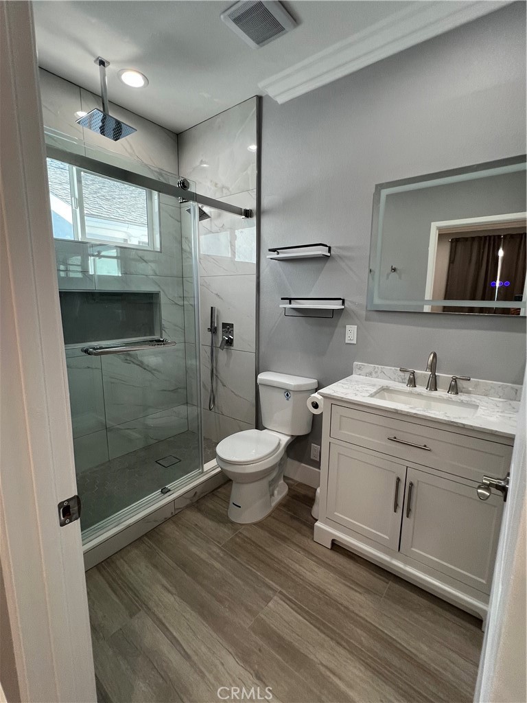 Brand new 2-bedroom, 2-bath ADU for lease in a beautiful and quiet neighborhood of the City of Orange. This approximately 1,000 SF residence features dual primary suites, offering privacy and comfort with a modern open layout. The home is finished with wood laminate flooring throughout and showcases sleek white cabinetry in both the kitchen and bathrooms. The contemporary kitchen is fully equipped with a 4-burner gas cooktop and oven, stainless steel LG refrigerator, dishwasher, microwave, and a single-compartment stainless steel sink. Additional highlights include a brand-new washer and dryer and individual mini-split air conditioning units in each room for customized comfort.