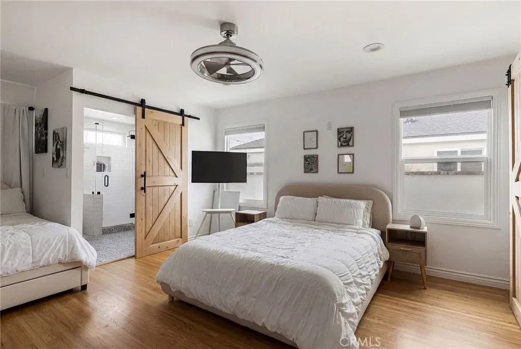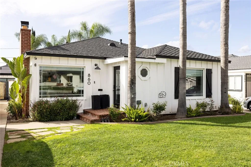 Tucked along a palm-lined street in one of Orange’s most established neighborhoods, 860 N Grand Street offers effortless single-level living with modern upgrades and timeless charm. Featuring four bedrooms, two full bathrooms, and approximately 1,890 square feet, this home blends comfort, functionality, and style. Open-concept living spaces are filled with natural light from expansive front windows and anchored by a classic fireplace that creates a warm focal point. Recessed lighting throughout enhances the clean, modern aesthetic while maintaining a welcoming feel. Remodeled kitchen showcases quartz countertops, stainless steel appliances, white cabinetry, subway tile backsplash, and a generous island with bar seating and built-in gas cooktop—ideal for entertaining or everyday living. Seamless flow between kitchen, dining, and living areas maximizes usability and connection. Primary suite serves as a private retreat with dual sinks and a walk-in shower. Three additional bedrooms provide flexibility for guests, home office, or growing households. Private backyard is designed for gatherings and relaxation, complete with a covered patio, café string lighting, lush lawn, mature palm trees, and ample space to host. Detached one-car garage and extended driveway provide additional parking and storage. EV charging and owned solar enhances efficiency and long-term savings. Moments from the historic Orange Plaza, Chapman University, local dining, parks, and convenient freeway access, this home delivers both lifestyle and location in one of Orange’s most desirable communities.