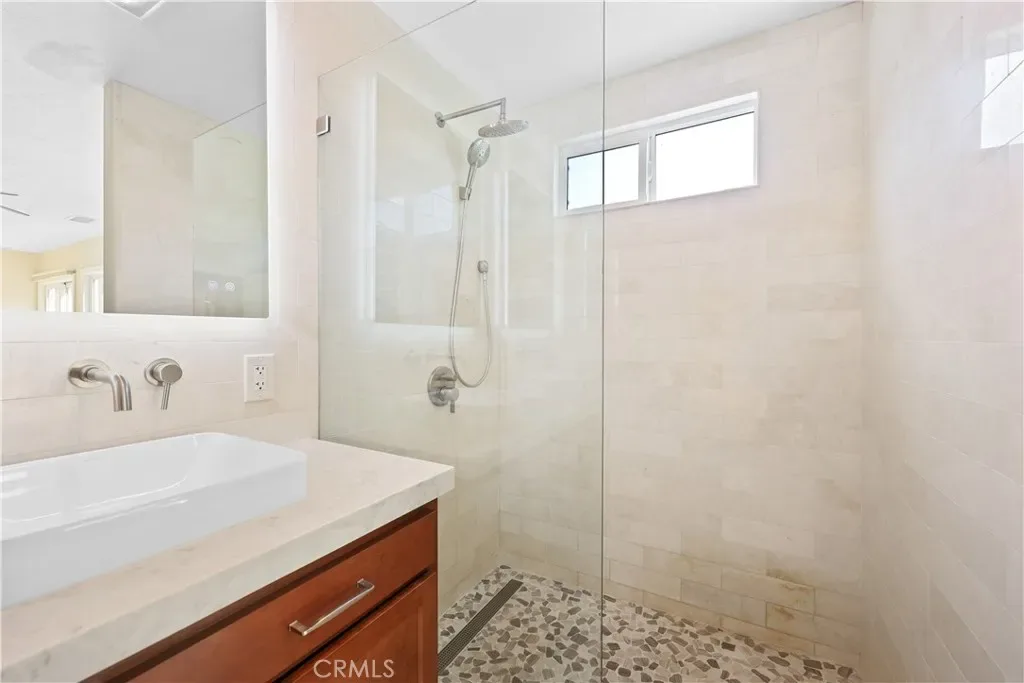Upstairs, you’ll find three additional en-suite bedrooms, each with ample closet space and beautifully updated bathrooms. Two of these suites include their own kitchenette and washer/dryer hookups, offering incredible flexibility and privacy. The luxurious upstairs primary suite provides a peaceful and refined retreat, with access to backyard thorough the upstairs balcony and staircase which leads to the backyard.