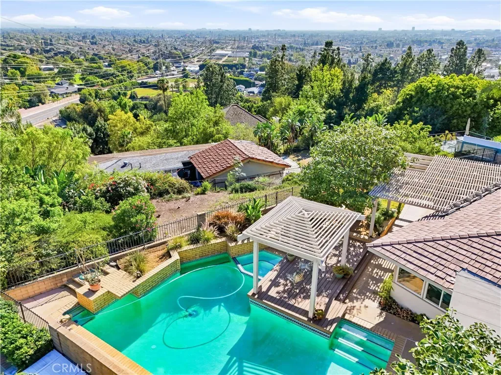 Perfectly positioned high above the OC basin on an expansive approximately 14,400 square foot lot, this single-story residence showcases truly spectacular panoramic views of city lights, skyline, sunsets, and the world beyond. From the moment you pass through the gated entry into the private front courtyard, a sense of arrival and possibility is undeniable.