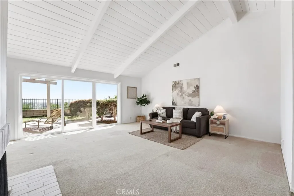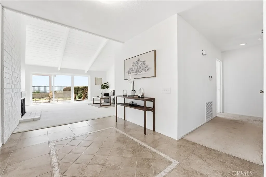 Step through the front door and you are immediately greeted by breathtaking horizon views that set the tone for the home’s incredible potential. The welcoming entry flows into an oversized living and dining space highlighted by walls of glass and captivating vistas. The adjacent kitchen with breakfast nook overlooks the backyard, pool, and endless views beyond — offering the perfect footprint for a stunning future transformation.
