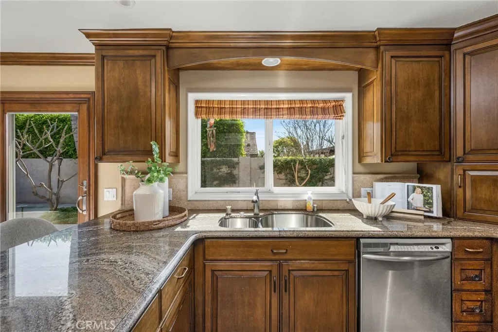 Experience effortless California living in this beautiful single-story 4 bedroom, 2 bath pool home, thoughtfully designed for comfort, style, and year-round enjoyment. The home welcomes you with a System Pavers driveway and front porch entryway, artificial turf lawn with beautiful landscaping, LED landscape lighting, and a custom front door. Inside, a bright living room with bay window, high beamed ceiling and built-in entertainment center provided the perfect gathering spot. The granite-faced fireplace with painted wood mantle plus the over-sized tile flooring adds a touch of elegance to the space. The dining nook features a charming banquette flanked by gorgeous built-in wood china cabinets. The space flows seamlessly into the remodeled kitchen featuring rich wood cabinetry, granite counter-tops, convenient breakfast bar, built-in refrigerator with water line for ice, wine chiller & high-end stainless appliances. Sliding doors from both the primary suite and kitchen area open to a private resort-style backyard with a remodeled pool and spa, waterfall, grotto, rock water slide, natural gas fire pit, and outdoor BBQ center—perfect for relaxed evenings and weekend gatherings. All bedrooms offer built-in closet organizers and mirrored closet doors, while the 4th bedroom is customized as a dual-station home office. A FULLY OWNED SOLAR SYSTEM, lightweight concrete tile roof, newer over-sized HVAC, newer water heater, and new Anderson double-pane windows provide exceptional efficiency. Additional highlights include a custom remodeled guest bath with tiled shower and soaking tub, indoor laundry room with storage (washer and dryer included), front and rear rain gutters, an attached 2-car garage with direct access and automatic roll-up door, and a desirable cul de sac location. A rare blend of thoughtful upgrades and inviting spaces, this home is designed for an elevated everyday lifestyle. Located close to the popular Santa Ana River Bed walking and biking trail where you can walk or ride from Yorba Linda to Newport Beach. Enjoy the nearby Eisenhower Park and Lake plus the neighborhood Olive Park and Ambriz Park less than a mile away. Hurry on this one as it is priced to SELL!!!