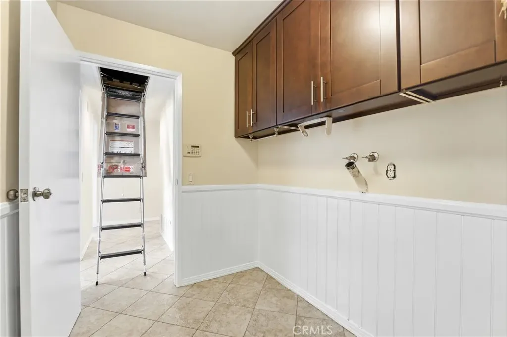 A spacious, dedicated laundry room adds to the home’s everyday practicality, while convenient attic access provides additional storage.