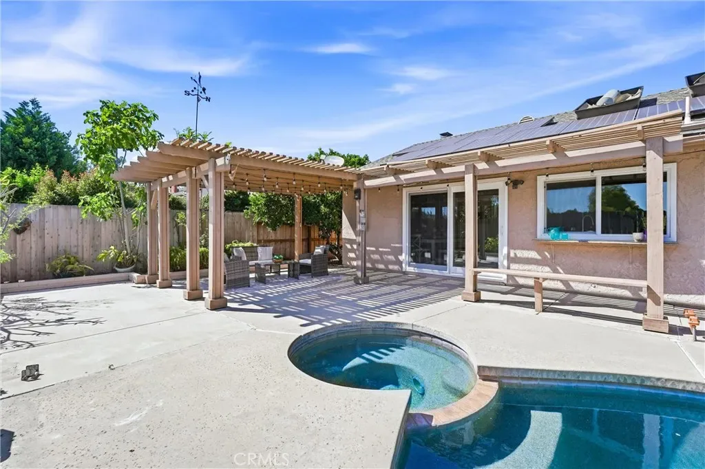 Step outside to a private backyard designed for both relaxation and entertaining, complete with a saltwater pool and in-ground spa, mature landscaping, and fruit trees including two orange trees and a Meyer lemon. A sprinkler system is already in place for easy maintenance.