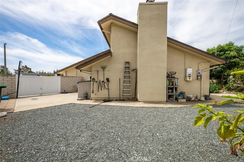Welcome home to this stunning single-story, four-bedroom house, ideally situated at the end of a quiet cul-de-sac. This property boasts an expansive lot with multiple areas perfect for year-round entertaining and ample storage capabilities. Inside, both the living room and family room feature soaring ceilings and an abundance of natural light, contributing to a bright and airy atmosphere, complete with a cozy fireplace. The interior also includes a beautiful gourmet kitchen, plantation shutters, upgraded flooring, and scraped ceilings. With three full bathrooms, this home offers added convenience for your growing family and guests. The spacious master bedroom includes double doors that open directly to a serene backyard. Each of the three guest bedrooms provides ample space for children, guests, or the option for a home office. The entire home is equipped with dual-pane windows and a central HVAC system with air conditioning for easy climate control. The home solar system and panels are leased. For those with extra vehicles or outdoor equipment, the property features a large RV access area capable of accommodating a sizable motorhome, boats, or other recreational toys.