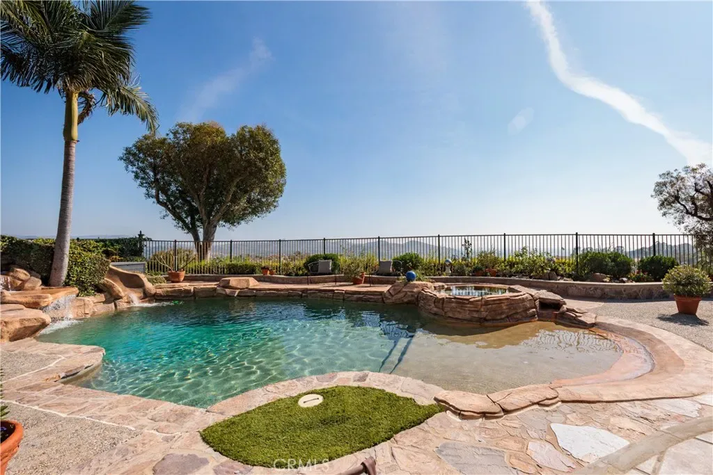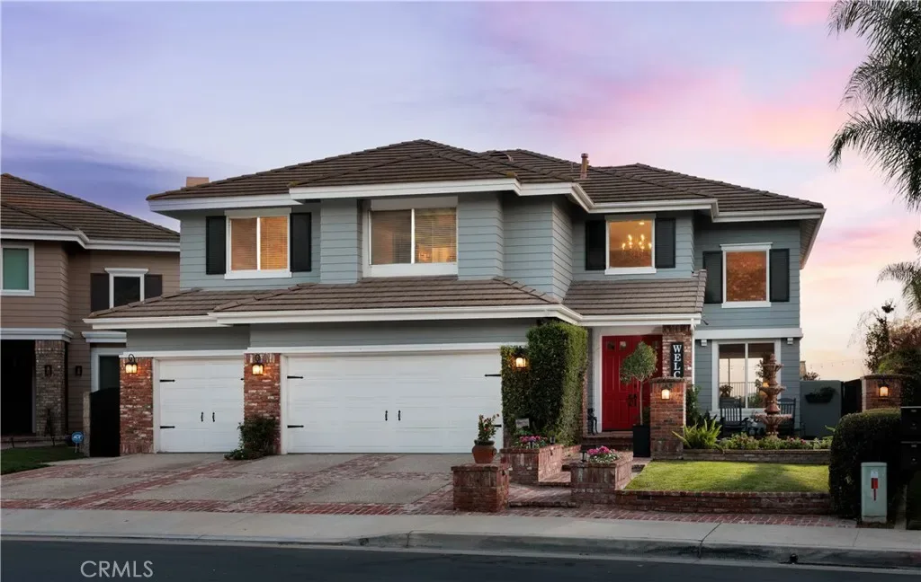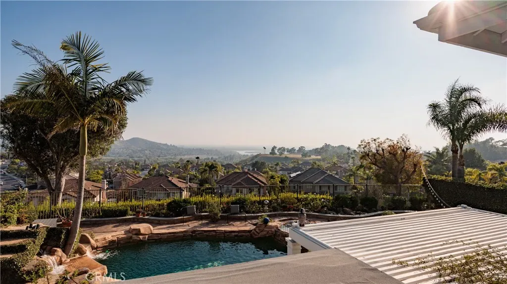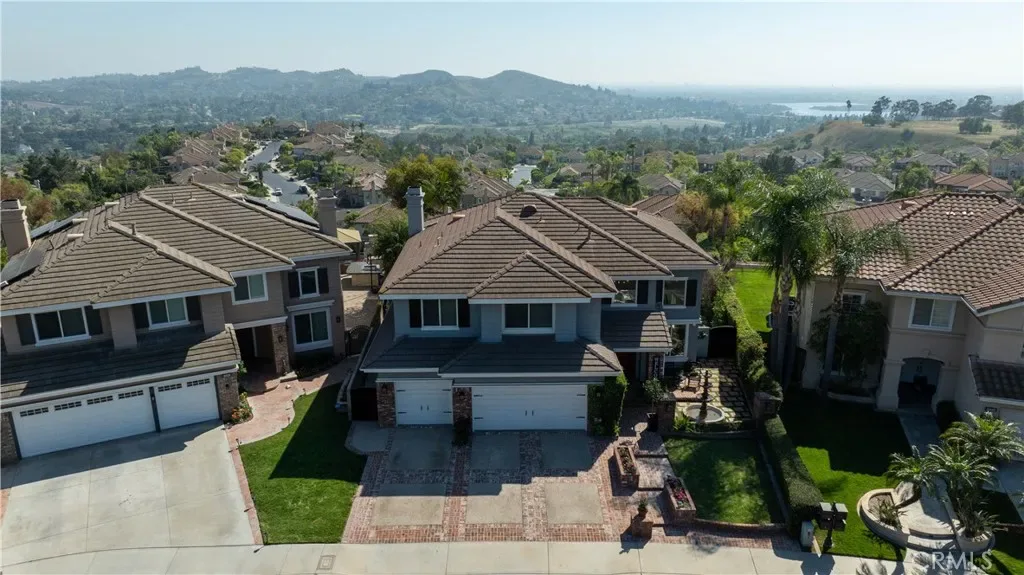 HILLSIDE VIEW HOME | PANORAMIC VIEWS | PRIVATE BACKYARD RETREAT | CUL-DE-SAC LOCATION | GATED PARKRIDGE COMMUNITY | Situated on a premium view lot within the prestigious gated community of Parkridge, this exceptional 5 bedroom, 4 bathroom residence offers 3,039 sqft of living space, blending privacy, comfort, and breathtaking scenery. Tucked away on a quiet cul-de-sac, the home delivers a rare sense of tranquility, with panoramic views stretching across city lights, rolling hills, and distant mountain ridgelines, extending toward Catalina Island and the ocean on clear days. From the moment you enter through the double front doors, a grand entry with soaring ceilings, expansive windows, and a sweeping staircase creates a dramatic first impression while filling the home with natural light. The formal living and dining rooms provide inviting spaces for entertaining, enhanced by large sliding doors that create a seamless indoor-outdoor connection. The kitchen serves as the heart of the home, featuring granite countertops, rich wood cabinetry, a center island, and a window framing the backyard and views. A breakfast nook and walk-in pantry enhance function, while the kitchen opens to the family room with a beautiful fireplace and built in bookcase. A main-level bedroom and full bathroom offer flexibility for guests or multigenerational living, along with a laundry room and three-car garage. Upstairs, the primary suite offers sweeping views of city lights and rolling hills to the ocean, with a cozy fireplace and complemented by a spa-inspired bath with dual sinks, soaking tub, walk-in shower, and two walk-in closets, plus an adjacent retreat ideal for an office, gym, or lounge. Additional bedrooms are generously sized, along with a bonus room or optional fifth bedroom. The backyard showcases the home’s elevated setting with a beach-inspired pool and spa, seating areas, outdoor fireplace, and built-in BBQ, all positioned to capture the views and create a private retreat. The property is located within a secure gated community featuring a neighborhood pool, spa, and sport court as well as being near top-rated schools, dining, and shopping. This is more than a home. It is a lifestyle defined by breathtaking views, privacy, and timeless elegance.