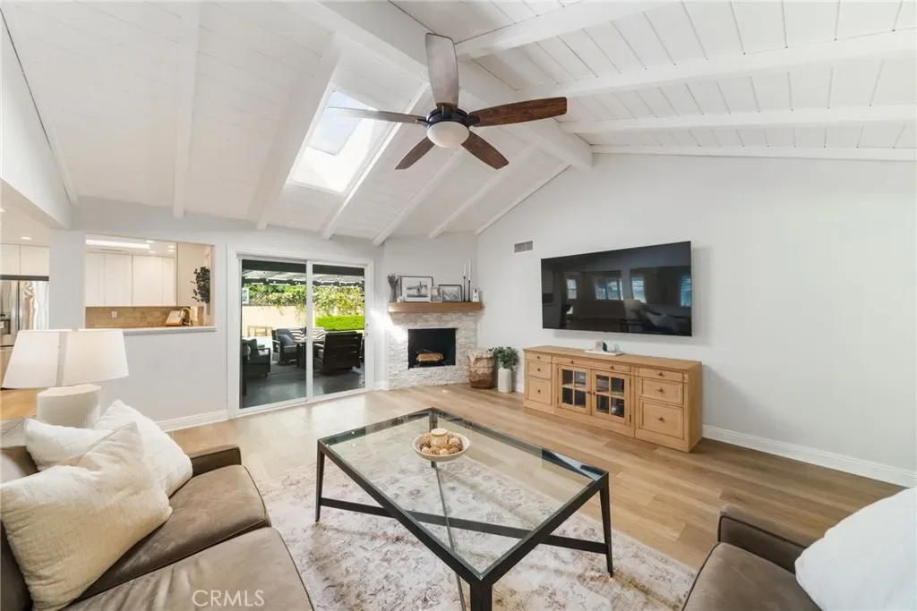 Nestled on an expansive 8,000-square-foot lot in the heart of Orange, this beautifully updated single-story residence offers a rare blend of comfort, style, and effortless Southern California living. Spanning approximately 2,300 square feet, the home features four bedrooms and two and a half bathrooms, thoughtfully designed with an open-concept floor plan that creates a natural flow between the main living spaces. From the moment you arrive, the home’s inviting curb appeal sets the tone for what lies within. Inside, the interior has been tastefully updated throughout, featuring luxury vinyl plank flooring, plantation shutters, and a bright, welcoming atmosphere filled with natural light. The living room is highlighted by beautiful vaulted ceilings and a classic wood-burning fireplace, creating a warm and inviting focal point that adds both character and charm to the space. The bathrooms have been recently updated with clean, modern finishes and Moen fixtures, elevating both comfort and style. The spacious primary suite offers sliding doors that open directly to the backyard, creating a seamless connection to the outdoor living areas. The home’s layout is ideal for both everyday living and entertaining, with open gathering spaces that flow effortlessly toward the backyard. Functionality is equally well considered, with a convenient interior laundry room and plenty of additional storage throughout the home, providing both practicality and ease for everyday living.Step outside to your private outdoor retreat, where a sparkling in-ground pool with newer equipment serves as the centerpiece of the backyard. The generous lot offers multiple areas to relax, entertain, or garden, complemented by mature fruit trees and ample space for outdoor enjoyment. The property also features RV parking and a detached two-car garage, offering exciting possibilities for a future ADU, guest house, or private workspace. Additional upgrades include fully paid-off solar, along with updated major systems throughout the home, providing both comfort and energy efficiency. Located in one of Orange County’s most charming and historic cities, Orange is beloved for its character, community feel, and central location. Residents enjoy the vibrant atmosphere of Old Towne Orange with its historic plaza, boutique shops, coffee houses, and renowned restaurants, along with excellent schools, nearby parks, and convenient access to major freeways.