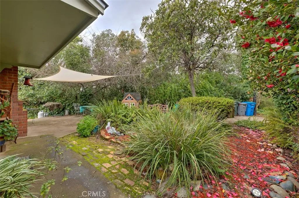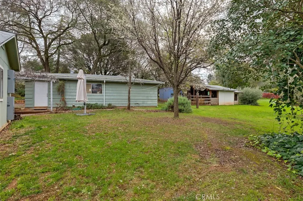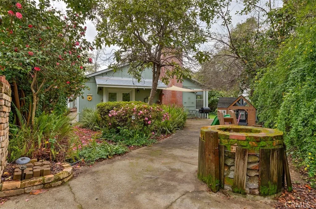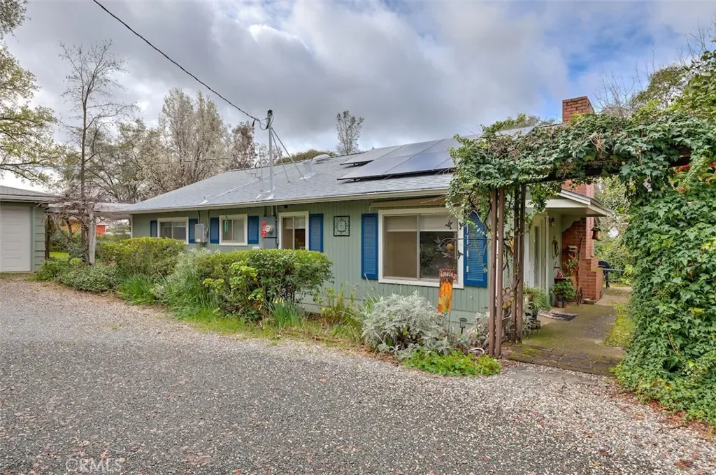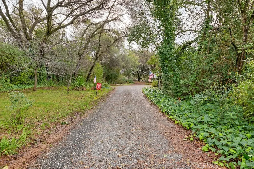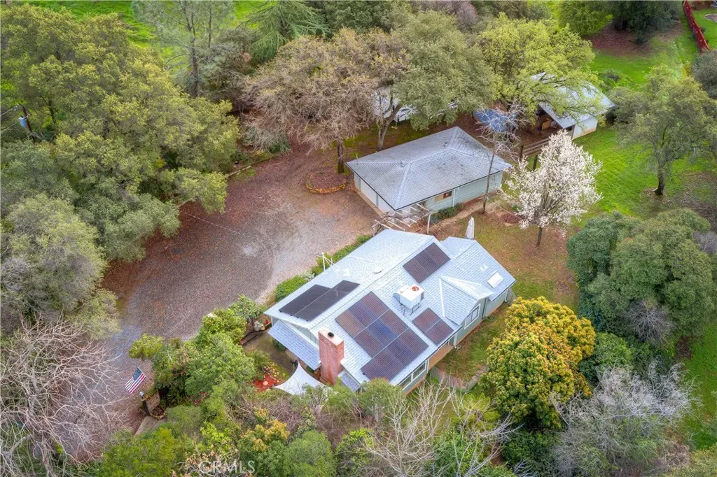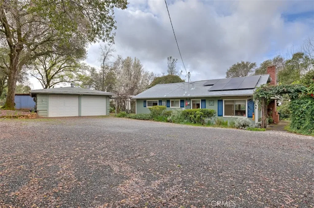 Charming country retreat offering privacy, gardens, and patios, in a lovely setting. The large garage/workshop contains the laundry and a separate room for projects. Plenty of space for RV parking. and a storage shed. The rear property once housed sheep, horses, goats and chickens in outbuildings. Lots of space for vegetable gardens. The area is known for its citrus farms and winery. The long driveway offers parking for several guests. When you discover this peaceul retreat, you will want to grab a book and curl up next to the fireplace. Arched doorways and crown moulding throughout create old world charm. New paint, ceiling fans, stove, flooring, screen doors and solar shades are recent additions. Lucious, established plants decorate the gardens. Ophir Elementary School is close by. Don’t miss the custom tile work in the kitchen and bath. The primary suite offers a private desk area. Notice the new roof with a solar panel lease which can be assumed by the new owner. It’s only a few miles to town. Located up a private driveway off the busy street makes it a great place for kids to play. This is truly a country jewel and one of a kind