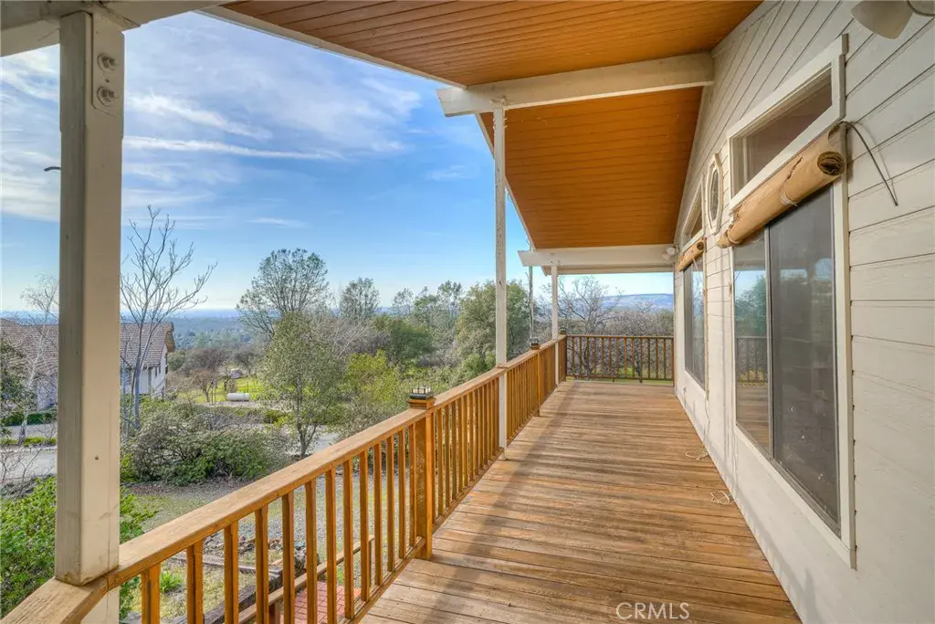 Beautiful 4 acre property with many Olive trees. In the East Foothills. Not far from the Lake. The two story home was built in 1981. But burnt and rebuilt in 1997. Entering from the 2nd level there is a large covered deck which wraps around the house to the back. Views of the valley from the Big O on Table Mountain around to the Marysville lights. Through the front door you enter the living room dining area and kitchen. There is vaulted ceiling two large windows and ceiling fan. Living room has Fire place. Kitchen has a breakfast bar and pantry. Primary bedroom is very large with two closets. Downstairs is a family room with a pellet stove. 2 bedrooms and a Utility room that could be a 4th bedroom. 2 slider glass doors. A lot of storage inside and out. Outside a RV carport with attached single car garage. With plenty of parking. Large shop. 5 sheds. The house sits back on the property with the front level land. There alot to see. Come take a look.