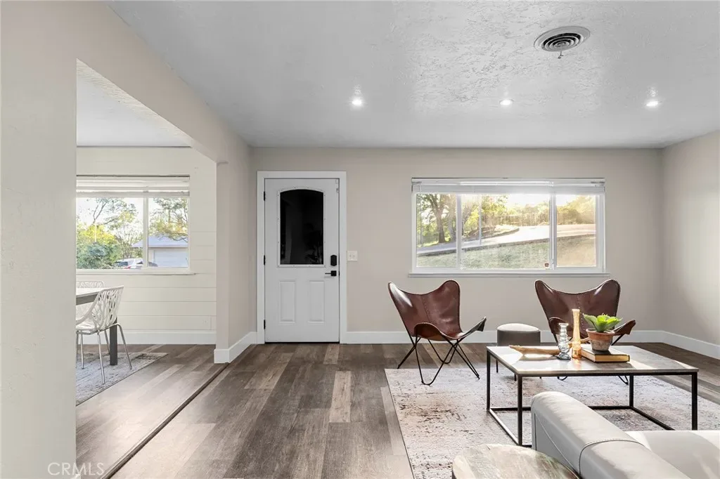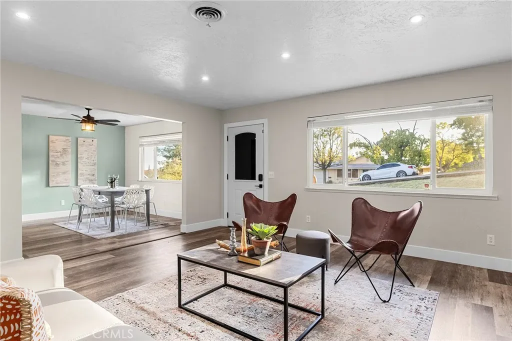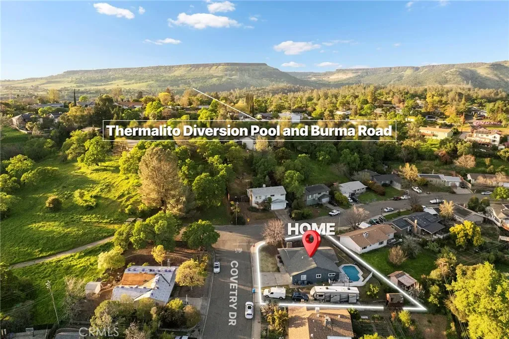 Welcome to 22 Coventry Drive, located in one of Oroville’s favorite neighborhoods! Situated on a large corner lot, this home offers 3 bedrooms, 2 bathrooms, and two spacious living areas with a great floor plan designed for both comfort and functionality. The front living room is filled with natural light and features a beautiful fireplace with a rock surround. Just off the living room is a large dining area that opens to the kitchen, where you’ll find white cabinetry, granite countertops, stainless steel appliances, a beautiful tiled backsplash, and a stunning wood hood vent with matching floating shelves. Bar-top seating adds the perfect spot for casual dining, making this space ideal for entertaining and gathering. Toward the back of the home, you’ll find a desirable split floor plan with two bedrooms and a bathroom on one side, and the primary suite on the other, with the family room situated between them. The spacious primary suite features a huge walk-in closet, a private bathroom with double sinks, and French doors that lead to the backyard. Step outside to enjoy the pool—just in time for the upcoming summer months—along with a large yard that provides plenty of space for gardening, play, or simply relaxing outdoors. With RV parking available, there’s also plenty of room for your recreational vehicles and toys. Conveniently located just minutes from the heart of town, this home is close to schools, shops, restaurants, and parks, with easy access to the scenic Lake Oroville and the Feather River for endless outdoor recreation.