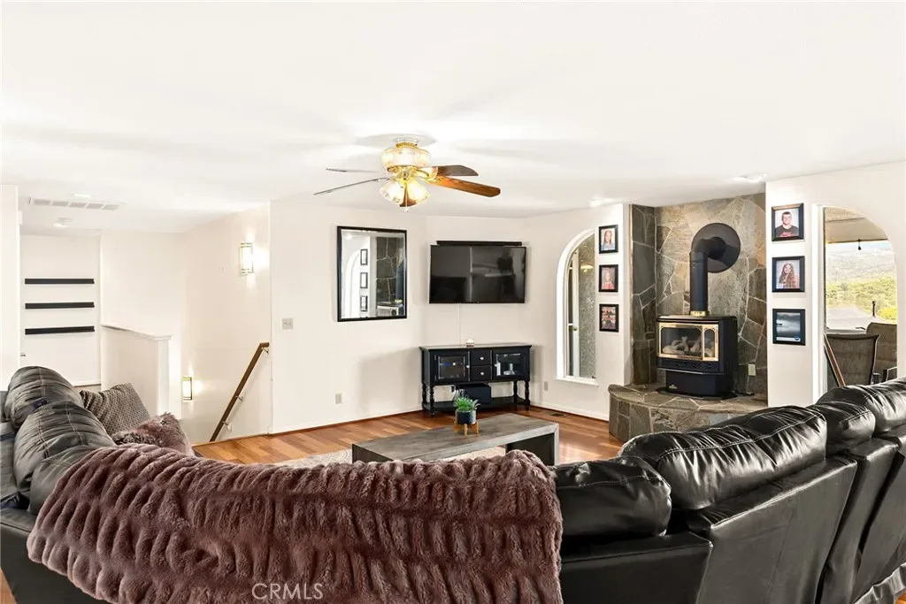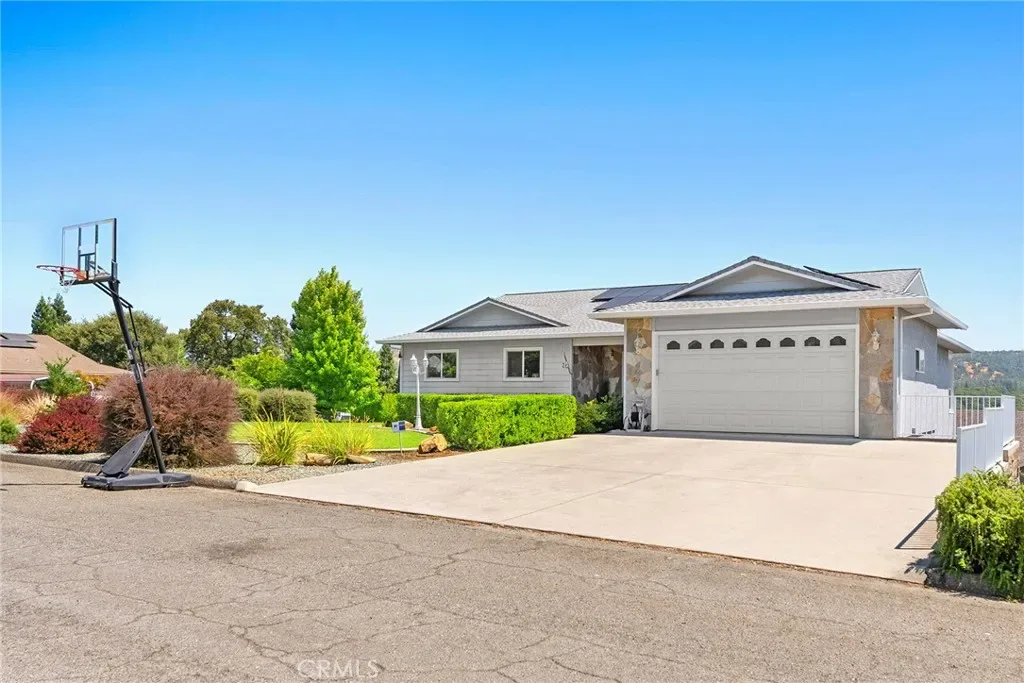 This exceptional property offers breathtaking views of Lake Oroville and is located in the desirable Kelly Ridge area. Built in 2001, this custom home features 5 bedrooms and 3.5 bathrooms. The main floor boasts solid bamboo flooring, 3 bedrooms, 2 bathrooms, and an office conveniently located off the living area. Additional highlights include a whole house fan, glass deck railings, tiled countertops, and a laundry room with ample storage. The garage on this level is equipped with an oversized door.