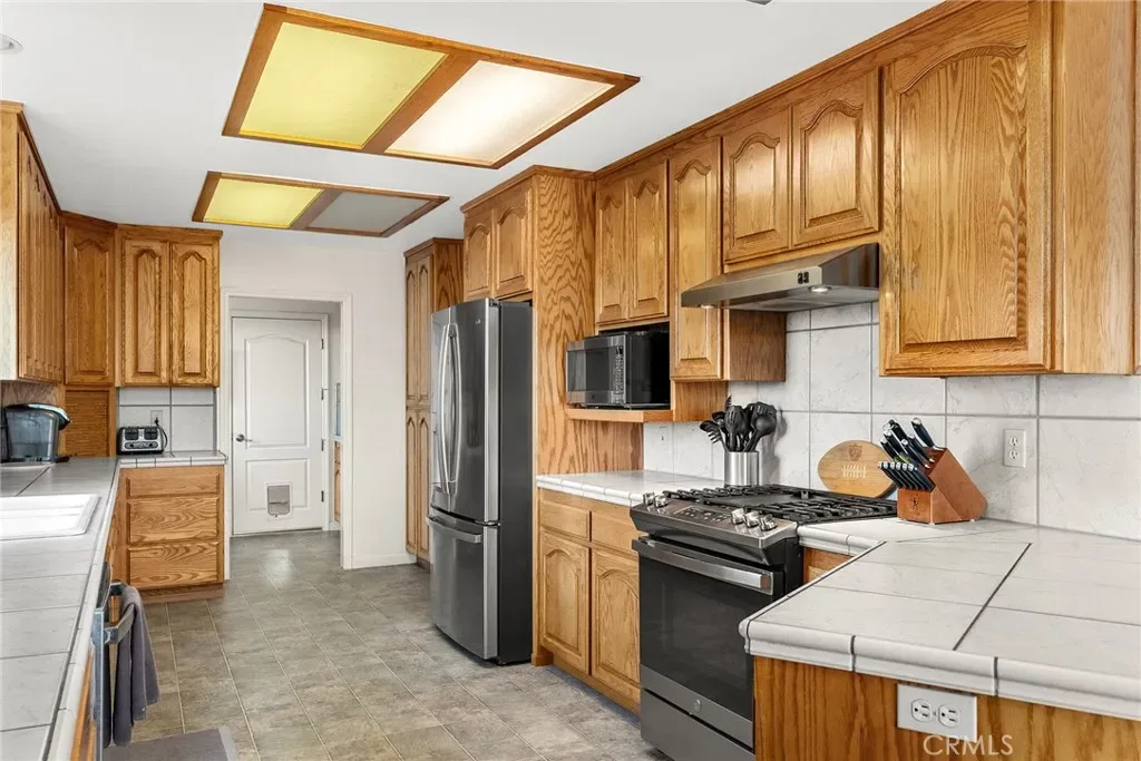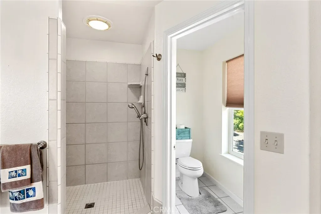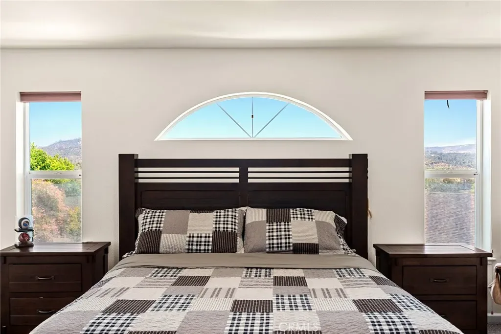 The primary bedroom is a true retreat with a spacious walk-in closet, a luxurious soaking tub, a tiled walk-in shower with dual shower heads, dual sinks, and direct access to the back deck. The covered deck offers stunning views of Lake Oroville, the foothills, and Minor’s Ranch Reservoir, perfect for enjoying the serene surroundings.