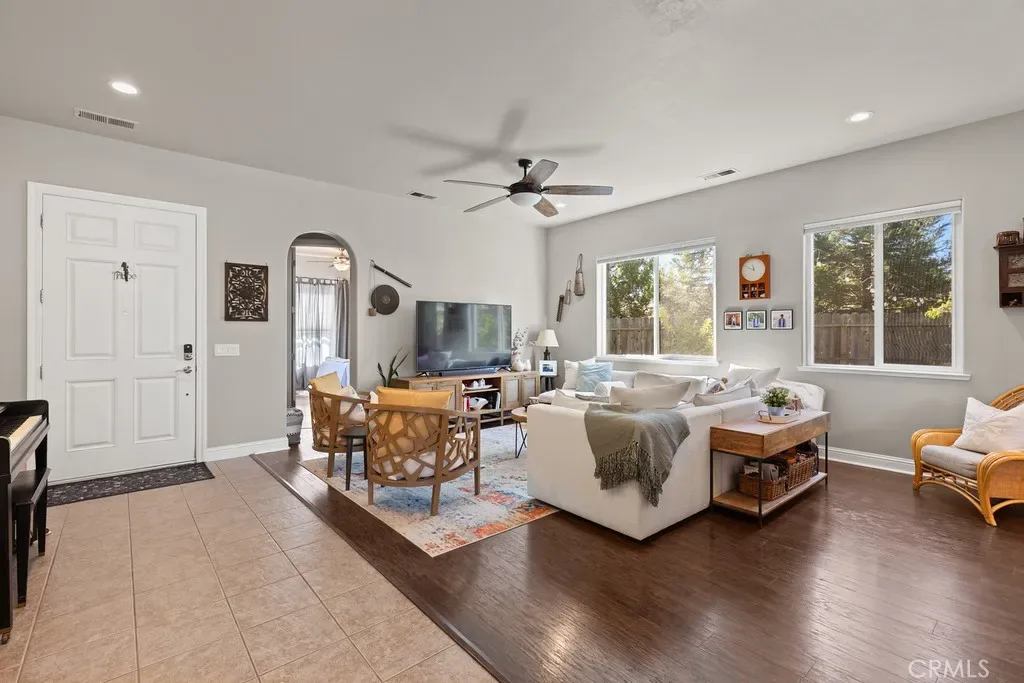 This pride of ownership home is located at the end of the cul de sac in the popular “Ridge” gated community! This prestigious neighborhoood provides a beautiful park with a playground, basketball courts, a baseball field and is just minutes from the Lake Oroville recreation area. This home is immaculate featuring a separate living room and an open great room with a large dining area and a dream kitchen! The kitchen has a large island, gorgeous alder cabinets with a coffee bar and built in desk area, tile counters & floors, stainless steel appliances including a gas range and a sliding glass door leading out to the back yard. The primary bedroom & bath are lovely with an oversized walk in closet complete with custom built-ins, a soaking tub, a separate shower and dual sinks. Other amenities include recessed lighting, tasteful fixtures including ceiling fans, vinyl plank wood floors throughout the living areas and all 5 bedrooms, custom blinds, 6″ basebaords, an office with built in book shelves and OWNED SOLAR! The private back yard is fully landscaped with a large concrete patio and a quaint side yard with a garden area full of fruit trees including apple, dwarf lemon, white nectarine and peach! This property is a beauty and a treat to show!