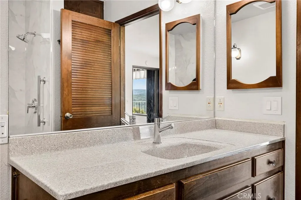 Enjoy the Lake Life, Views and Mountains! Kelly Ridge is a fantastic location for proximity to Lake Oroville and Bidwell Marina!! LOOKING FOR A 2 BEDROOM MAIN HOME and a FULLY FUNCTIONAL ADU? The ADU/Mother-in-Law unit complete in 2019. NEW 2025 Luxury Plank Flooring throughout. NEW solid surface counter tops and paint. Guest Vanity replaced 2025. The 2019 Installed Owned Solar has 36 Panels. Central Heat and Air replaced approximately 4 years ago. Exterior Paint complete 3 years ago. Composition Roof replaced. GENERAC Back Up Power System installed. Hot Water Heater replaced about 5 years ago. Updated Dual Pane Windows. Newer composite deck measuring 10ft.X40ft with views of the mountains and lake. The main living room offers newer luxury vinyl plank flooring, vaulted wood beam ceilings and pellet stove. The kitchen offers tile counter tops, tons of cabinets, newer GE Profile stainless built in double oven, GE Profile stainless dishwasher, built in range, extra deep Kohler sink with new fixtures, garden window and plank tile flooring. The main primary offers a newer luxury vinyl plank flooring, walk in closet, slider to deck and views. The main primary bath offers newer solid surface vanity, toilet and solid surface step in shower. The second primary offers a walk in tub and walk in closet. Through the expansive laundry room with pantry cabinets is the 2 car garage and the entrance to the ADU. The ADU has 9ft ceilings, recessed lighting, dual pane windows, free standing oven/range, built in microwave, white shaker style cabinets, stainless sink, Mini Split system and luxury vinyl plank flooring. The bathroom offers a step in shower with glass doors and solid surface vanity. The ADU also has a separate entrance to the backyard. The under house storage is fantastic. The concrete floor measures 10ftX20ft with lights and possible workshop area. Fully Fenced backyard and no house below this lot. The front of the home is very private with the mature landscape and covered front porch. The two car garage has a tall 9ft automatic garage door. This home is ready for a new owner to put their personal touches on this home.