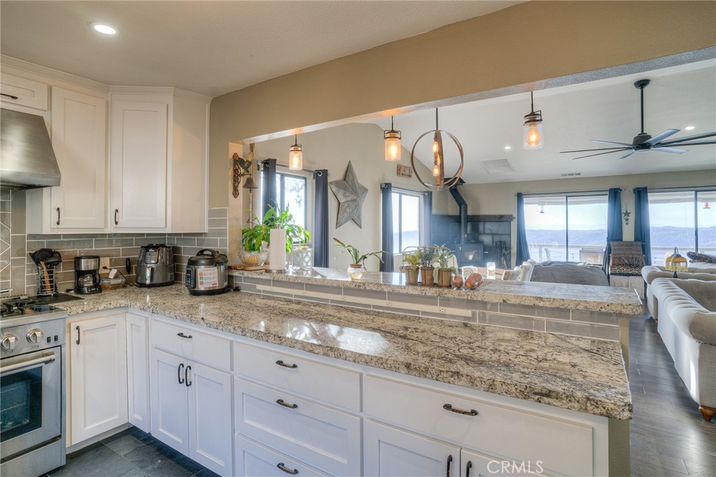 Your Lakeview Escape with Luxury at Every Turn! Tastefully remodeled, This upscale home with a breathtaking views of Lake Oroville! This home has over 3200sq ft of living space and sits on 15.17 acres , Some of the great features and the stunning craftmanship are: A gourmet chef’s dream kitchen with gorgeous high-end range/stove with a pot filler faucet. The living room has a wood stove and a sliding glass door that leads to a tiled deck that overlooks vast lake views. Both the upper and lower decks are plumbed with propane for accessibility for buyer’s entertaining needs. The lovely primary suite has a sliding glass door to the deck, barn doors that lead to the primary bathroom, which has a large walk-in closet, heated floors, double sinks, a walk-in shower with two showerheads, and a large soaking tub. Downstairs you’ll find a comfortable living area with 2 additional bedrooms and a full bathroom along with a pet room which has a doggie door to the exterior and a pet cage outside. Your pets can be safely and warmly inside and still be able to go outside as needed. Attached standard 2-car garage, a second attached 3-car deep single wide garage and a 30×60 shop ! The shop is a Butler built, red iron shop with top of the line rated insulation. It has high bay apx.20 feet tall and 3 roll up bay doors with 2 man doors. The property has a septic tank and a well which also includes an additional 1250-gallon tank for storing extra water. The property has 3 gates. The first gate is to the lower property, the second is to the shop and the third gate is to the house and is shared with a neighbor. Imagine yourself in this home that exhibits tranquility, style and a much More. Don’t delay call today for more info!