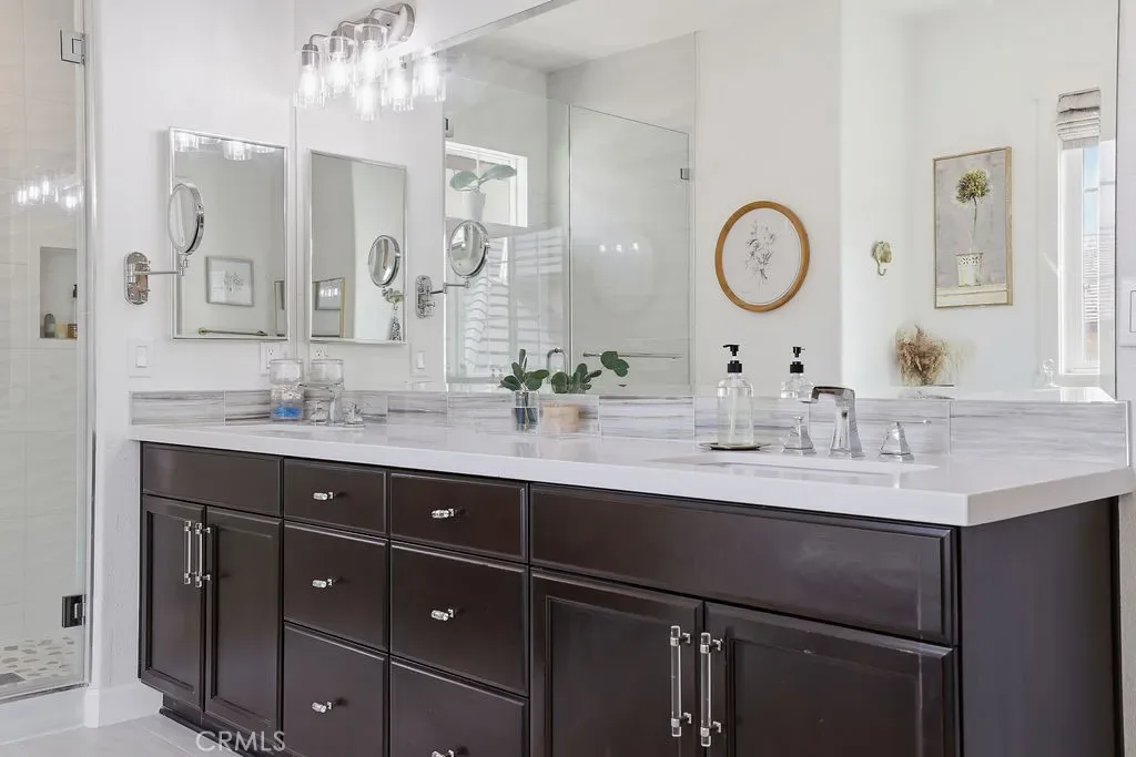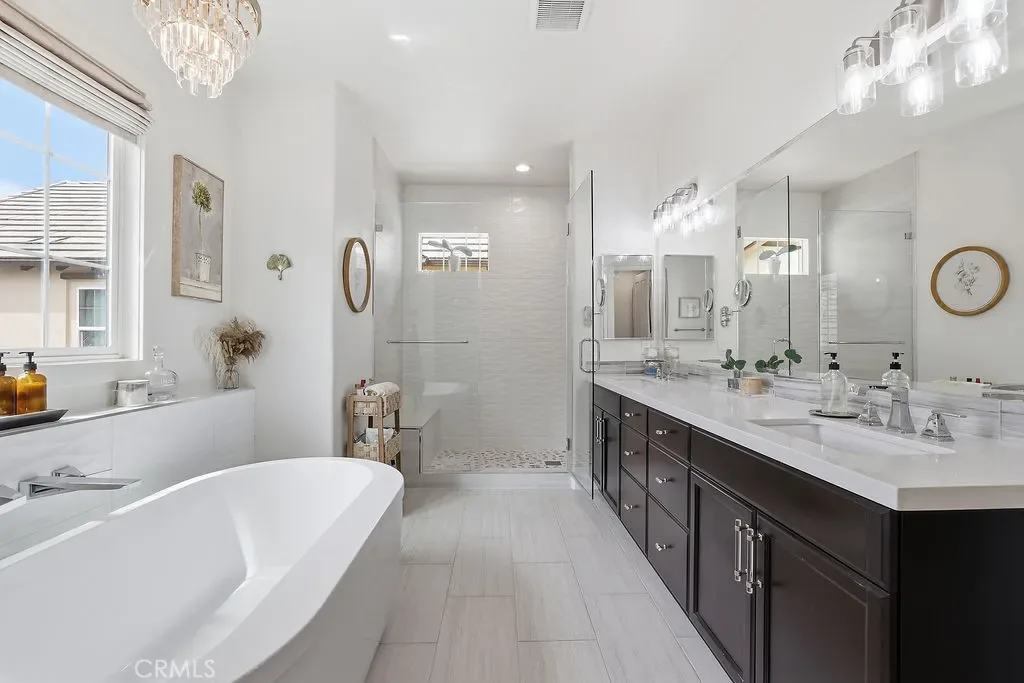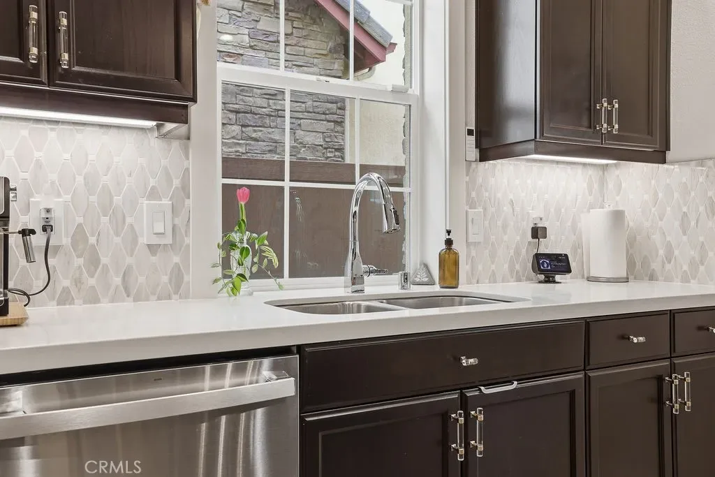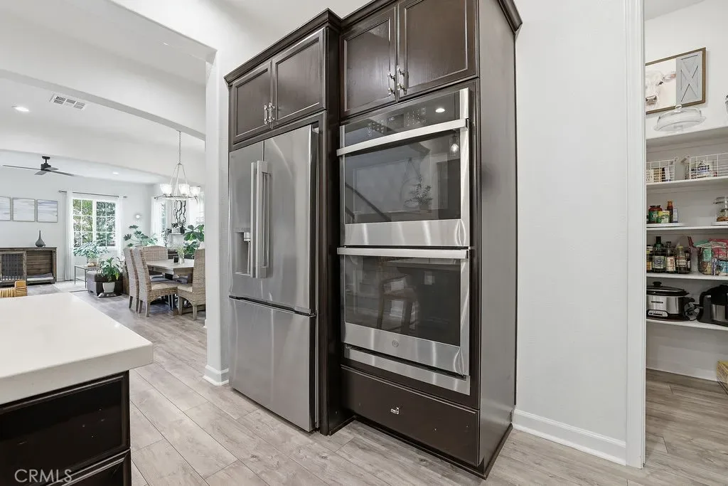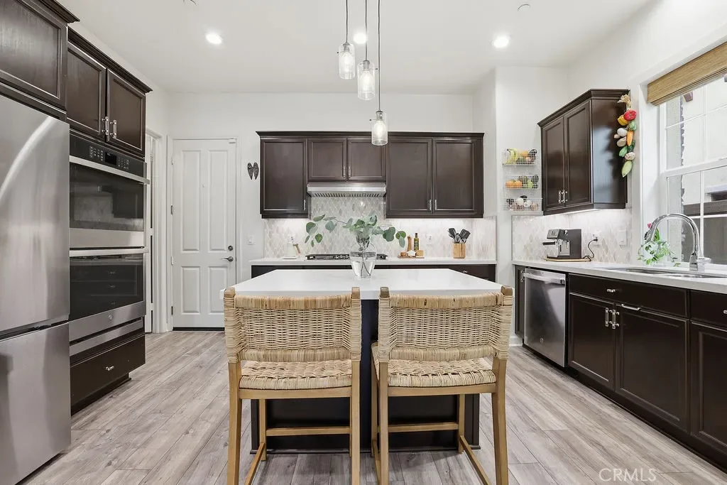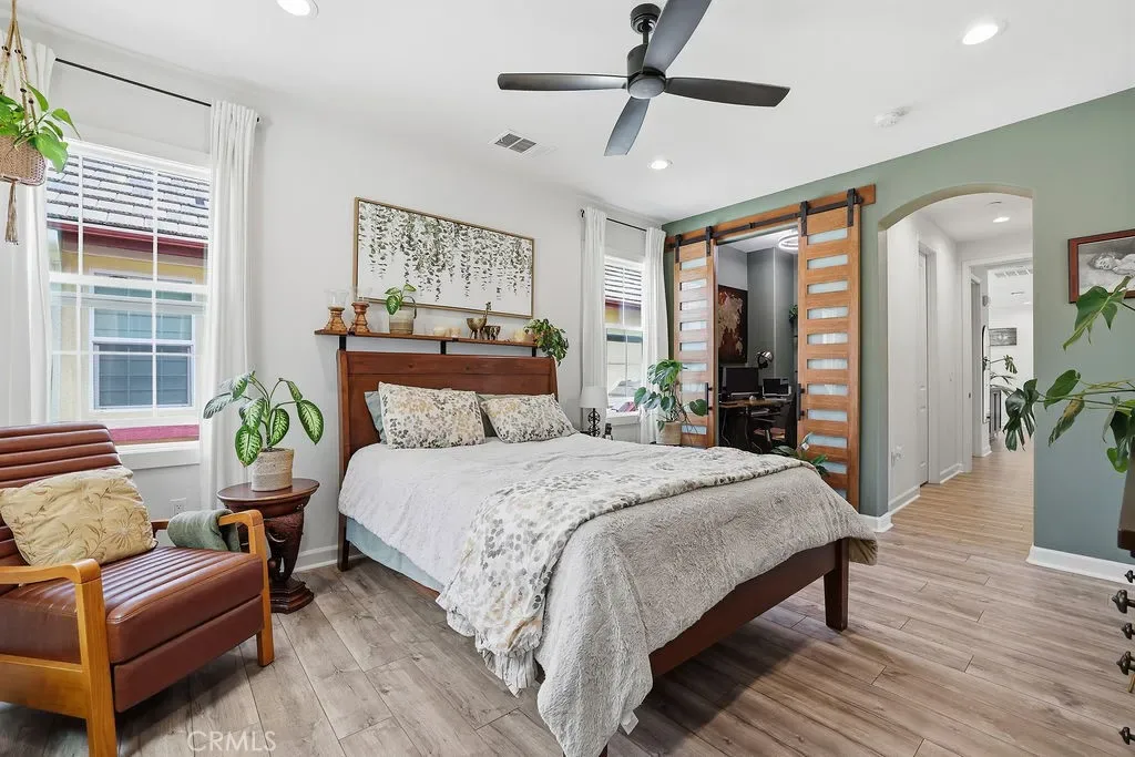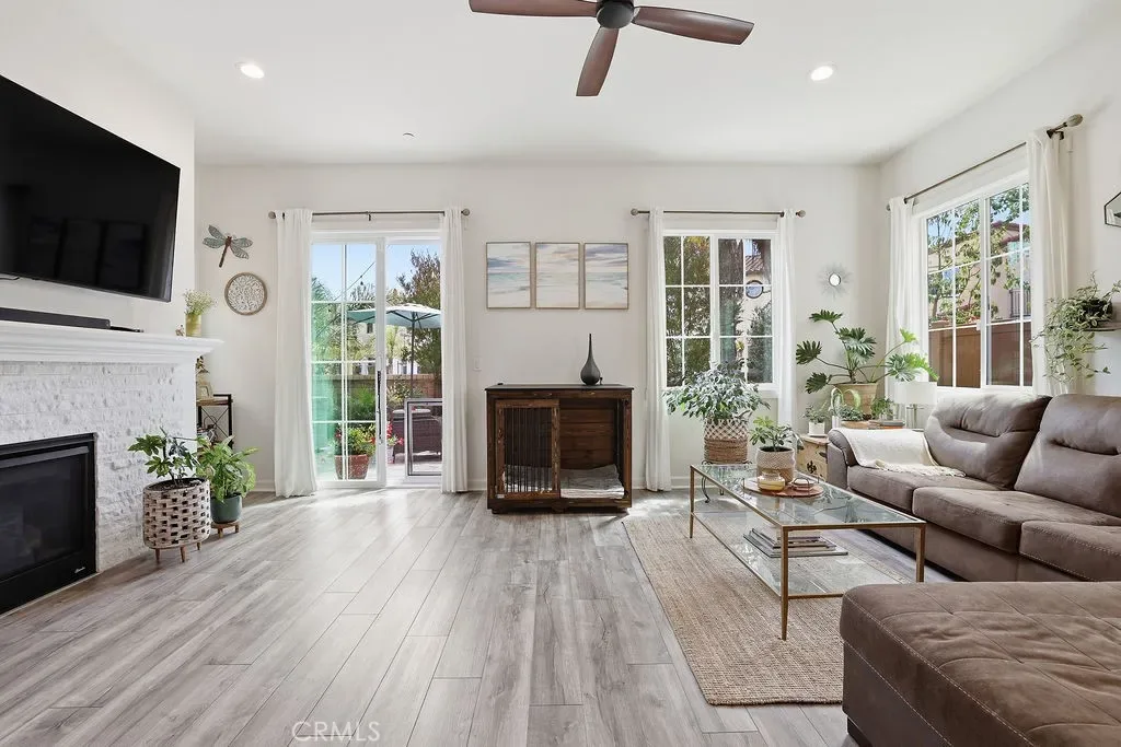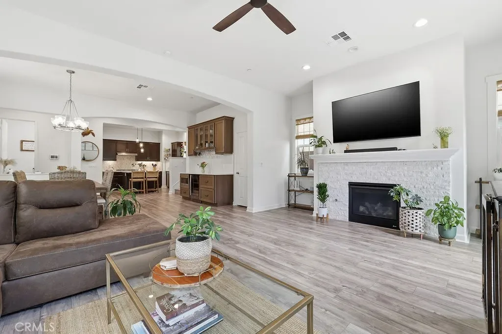 Experience luxury and comfort in this beautifully upgraded Pebble C plan home located in the exclusive, gated community of The Gallery at River Ridge. Built in 2020, this 3-bedroom, 2.5-bath residence spans 2,330 sq. ft. and offers a perfect blend of sophistication, functionality, and low-maintenance living. Step inside to discover an open-concept and sun-filled main floor with premium flooring, a custom-tiled gas fireplace, and a large under-stairs storage area, newly installed built in dry bar with quartz counter tops and beverage refrigerator. The gourmet kitchen features elegant Cordovan cabinetry, bright white quartz countertops, stainless steel appliances, a five-burner cooktop, double oven, center island, and a walk-in pantry—a true chef’s delight. Upstairs, a spacious loft provides flexible living space—ideal for a home office, media room, or potential fourth bedroom. Newly renovated primary suite exudes relaxation with a spa like vibe, freestanding soaker tub and large format tile, a truly serene atmosphere. Large walk-in closet, and upgraded bathroom finishes. Enjoy seamless indoor-outdoor living in the private backyard, enhanced with professionally designed hardscape, perfect for entertaining or relaxing under the California sky adding a touch of tranquility to everyday life. Additional perks include a 2-car garage and driveway parking—a rare find in this development.