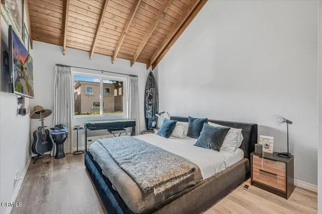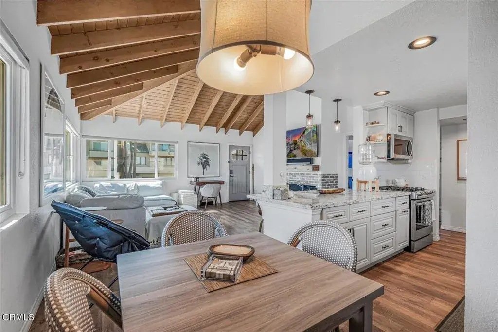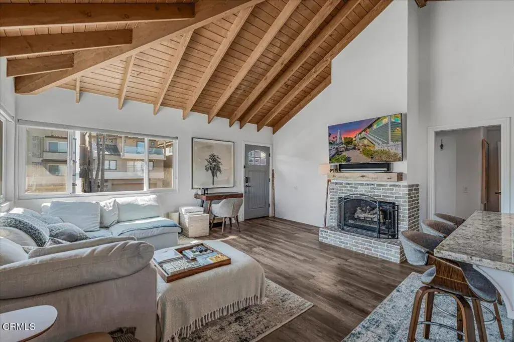 Coastal Comfort Meets California Charm — Just steps from the sand, this beautifully updated 2-bedroom, 2-bath one-of-a-kind condo in Oxnard Shores offers the perfect blend of beachside serenity and modern convenience. Enjoy peek-a-boo ocean views from the living room and bedroom, vaulted wood-beam ceilings throughout, and a cozy fireplace that anchors the inviting living space. Both bathrooms have been remodeled with skylights that fill the rooms with natural light, and the chef’s kitchen shines with newer cabinetry, stainless appliances, and a striking copper sink. The primary suite features a walk-in closet and serene ambiance, perfect for unwinding after a day at the beach. Entertain with ease on the dining deck or in one of two spacious patios–complete with a fire pit, garden area, and a fenced-in space ideal for pets.Additional highlights include a 2-car garage with washer, dryer and EV charger, plus a dedicated parking space for guests or extra vehicles. Dual-pane windows and a low HOA add comfort and value. Nestled between Malibu and Santa Barbara, this move-in-ready gem delivers coastal living at its finest–complete with ocean views from your front door