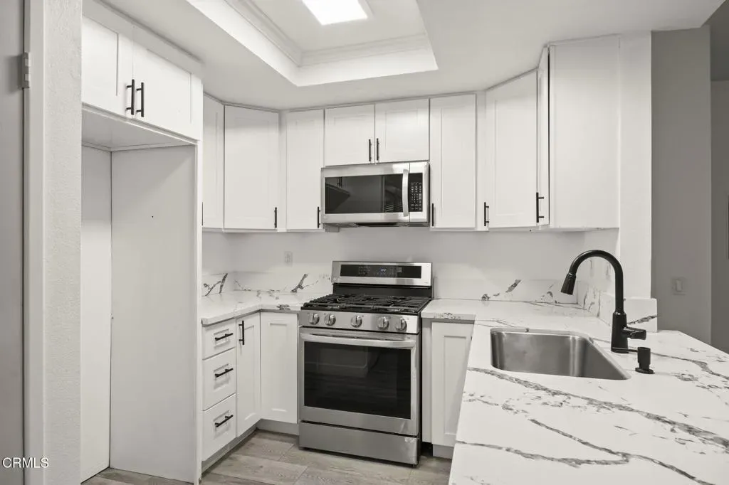 Welcome to this charming and spacious single-story 1 bedroom, 1 bath Las Brisas townhome located in the desirable North Oxnard. This thoughtfully designed home features an attached 1-car garage and a convenient indoor laundry closet for added ease.Step inside to find newer flooring throughout, complemented by beautiful quartz countertops in the kitchen. The open-concept layout seamlessly connects the kitchen to the living room, creating an inviting space perfect for both relaxing and entertaining. Enjoy casual dining at the breakfast bar, and appreciate the updated shower that adds a modern touch to the bathroom.The primary bedroom offers comfort and functionality with two spacious closets, providing ample storage. A sliding glass door leads you to your own private patio, an ideal spot to unwind and take in the refreshing ocean breeze.Residents of this community enjoy access to a pool and spa, enhancing the overall lifestyle experience. Conveniently located near restaurants, shopping, and easy access to the 101 freeway, this home also offers close proximity to St. John’s Hospital.Don’t miss this wonderful opportunity to own a charming home in a prime location!