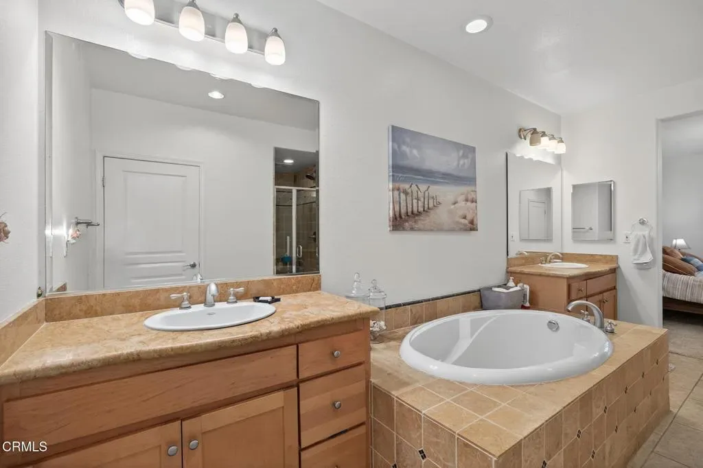 Welcome to Port Marluna, and your perfect single level condominium home or weekend resort getaway in the Seabridge waterfront community. Featuring 1700 square foot of gracious living area in an open layout with light flooding in from the living room windows and balcony, overlooking the ‘Seabridge’ to the Marina. For people watchers, this is the view of the pedestrian bridge where professional photographers capture quinceaneras, graduations, proms and wedding parties. The grand front entry to your building is through coded access doors with a walkway leading to your front patio and your formal entry. Once inside, the luxurious kitchen island breakfast bar greets you. The kitchen with quality wood cabinetry and granite counters, make you feel like the gourmet chef ready to cook or entertain. With all built in cooking appliances including double ovens, gas range top and microwave, (plus refrigerator.) From the kitchen, you enter the dining room, which is open to the living room, with views toward the marina. From the living room, you can walk out to your balcony and enjoy the gorgeous Southern California Sunsets and enjoy the moments. Your bright and spacious primary suite also opens to the balcony, allowing the sun to light up the room and fresh breezes to drift through. Your suite also offers a walk in closet. The primary bath includes just that, a wonderful luxury tub, separate tiled shower and two separate sink dressing areas. Inside by the guest bedroom and bath, is your laundry area and the included washer and dryer. For parking your vehicles, two assigned parking spaces are yours along with an additional storage locker that was just installed. When you are ready to relax by the water, you are within steps of a magnificent terrace equipped with lounge chairs, water feature, BBQ area and a fireplace where you can sit and enjoy the marina lifestyle. Seabridge amenities include a 365 days a year temperature-controlled heated pool, spa, clubhouse, gym, meditation/pilates room, caterers kitchen, reading room with fireplace, outdoor fire pit and bbq area with plush lounge chairs, play area for children, walking paths around Seabridge community. Make this home yours and enjoy living in the Channel Islands Marina where you can boat to the islands or boat around the harbor and enjoy the many restaurants and shops. Take a look and then make this your home!