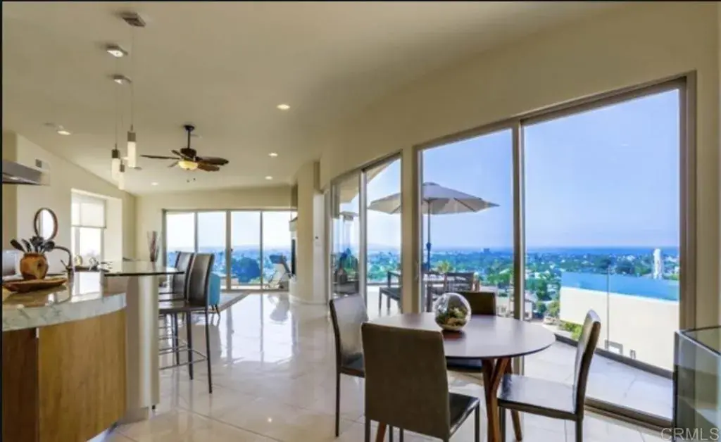Exceptional luxury rental offering nearly 270-degree panoramic views of the ocean, bay, and city skyline—from La Jolla to downtown San Diego. Situated on the slopes of Mount Soledad among multi-million-dollar estates in one of North Pacific Beach’s most prestigious neighborhoods, this contemporary residence delivers privacy, scale, and refined design. This custom built home with extensive remodelling, the home features 4+ bedrooms, 4.5 bathrooms, plus (+) room can be office or used as a bedroom and approximately 3,337 sq ft of living space.Views, privacy, and luxury with open living areas that flow seamlessly to multiple expansive view decks. The main level showcases a spacious kitchen, dining, and living area with custom cabinetry, marble countertops, porcelain flooring, and two glass fireplaces. Generous interior space includes a dedicated office, bonus room, and flexible lower-level room ideal for media, gym, or guest use. A rear lower bedroom with private entrance offers potential for an in-law or guest suite.The primary suite features sweeping views, a spa-style bathroom with steam shower and soaking tub, oversized his-and-hers closets, and a conveniently located laundry room. All bedrooms include ensuite bathrooms. Additional features include a tech-forward home systems/media command center housing surveillance, security, and connectivity infrastructure. Gated.
