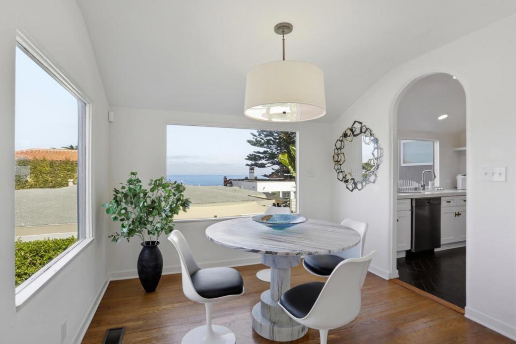 Spring arrives gently along the Pacific in Pacific Grove, & this distinguished English Cottagestyle residence captures the seasons warmth with effortless elegance. Perched just above & moments from the shoreline, the home offers a refined coastal lifestyle where fresh ocean air, garden blooms & natural light shape the rhythm of everyday living. Originally crafted by master builder M. J. Murphy, whose work helped define the architectural character of the Monterey Peninsula, the residence carries a quiet sense of heritage. Steeply pitched gables, smooth white stucco & a prominent chimney create a timeless storybook silhouette framed by curated gardens & classic hardscaping. Inside, sunlight filters through generous windows, revealing tranquil ocean glimpses while illuminating warm wood floors & beautifully scaled living spaces. An elegant fireplace anchors the gathering area, where classic character meets comfortable modern living. Outside, gardens & stone pathways come alive in the spring air. Patios invite morning coffee with the sea breeze, relaxed afternoons outdoors & golden evenings beneath open skies. Set within one of PGs cherished seaside neighborhoods, this residence offers architectural provenance, understated luxury & the enduring beauty of coastal California living.
