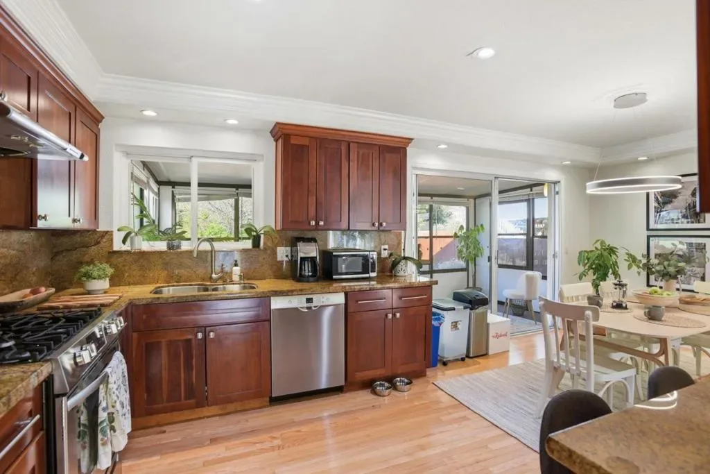 Nestled in Pacifica’s desirable sun belt, this warm and inviting home offers comfort and charm in a serene setting. The living room, complete with a classic fireplace, flows seamlessly into the dining area and a bright sunroom, an ideal spot to enjoy year-round garden views. Fresh interior and exterior paint create a crisp, move-in-ready feel. The kitchen features granite countertops, beautiful wood cabinetry, and hardwood floors that continue throughout, adding timeless appeal. Upstairs, you will find three well-appointed bedrooms and two updated full bathrooms. The lower level offers exceptional versatility with a spacious bonus room, perfect as an additional bedroom, family room, or guest space, along with a third full bath and direct access to a private patio.Step outside to a beautifully cultivated orchard with a variety of fruit trees and shrubs, creating a peaceful retreat for relaxation or entertaining. Located just five minutes from hiking trails and the beach, this home offers the perfect blend of nature, comfort, and convenience. Enjoy an easy, scenic commute with ocean views to San Francisco and the Peninsula, plus convenient access to BART and Caltrain for added flexibility.
