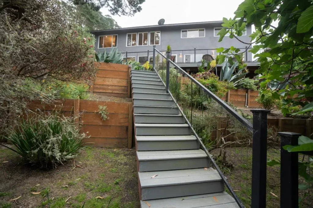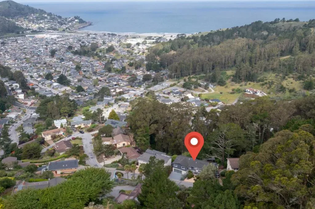 Situated in the exclusive Linda Mar neighborhood, this rare gem offers an exceptional blend of privacy, expansive lot size, and serene ocean views. This meticulously designed home features a main level w/4 spacious br, 2 ba, kitchen, living room & dining area. The gourmet kitchen is a chefs dream, anchored by a $7k 3 yr old Thermador range, $15k 3 yr old Sub-Zero refrigerator, an apron sink, & granite countertops. In the open living & dining areas, a wall of windows invites brilliant natural light & showcases a tree-lined vista w/filtered views of the Pacific. The residence is uniquely versatile, featuring 2 distinct family rooms. For those requiring extra space, one of these rooms can easily serve as a 6th bedroom at the lower level. The middle level also houses a vast & luxurious primary suite, complete w/walk-in closet, & a 200-square-foot spa-like bathroom featuring a steam shower, soaking tub, & bamboo waterfall faucets. Outdoor living is equally impressive, centered around a massive 4 yr old $100k 1,400-square-foot deck & a indoor hot tub cottage located just steps away from the primary suite. The fully landscaped, terraced grounds include a built-in firepit. This is an exquisite opportunity to own a home that perfectly balances luxury with functional, flexible living.