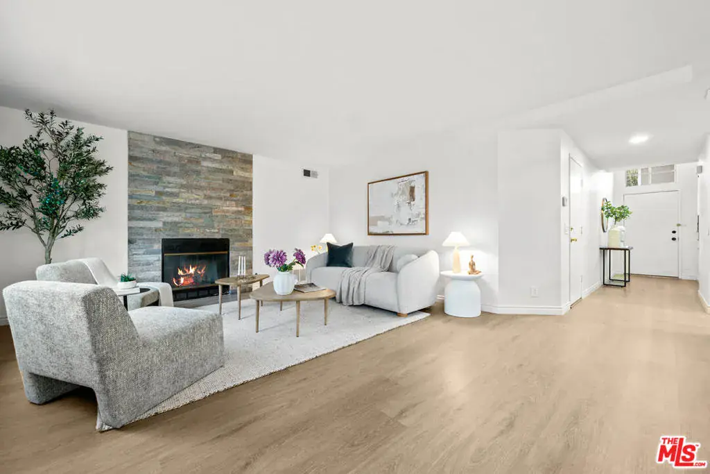 Beautifully updated 3-bedroom, 3-bath residence offering 1,926 sq ft of spacious living in a gated community. The home has been recently refreshed with new flooring and fresh interior paint throughout. The open-concept floor plan features a spacious kitchen opening to the dining and living areas, highlighted by a cozy fireplace. The primary bedroom includes an attached bath and a walk-in closet. One additional bathroom is located on each level, offering added convenience for guests and daily living. Additional features include an attached two-car garage, great natural light, and a functional layout ideal for both everyday living and entertaining. Conveniently located near shopping, dining, schools, parks, and with easy access to the 5 and 118 freeways.