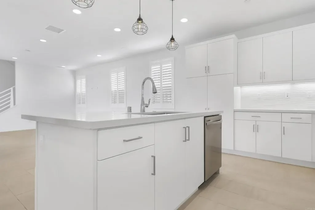 This two-story home features an open-concept layout where the kitchen flows seamlessly into the living and dining areas, with optional multi-stack sliding doors to create a true indoor/outdoor living experience. Upgrades include quartz countertops, large format tile flooring downstairs and in all wet areas, full plantation shutters throughout, and paid solar. A loft and separate cabana/game room provide flexible space for work or play, and the detached bonus room is perfect for a gym, office, or guest space. The backyard is fully landscaped with artificial turf, making it both functional and easy to care for.