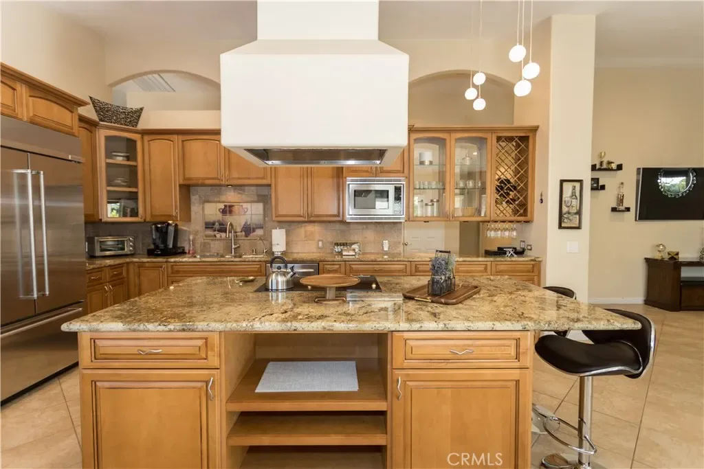 Inside, the expansive four-bedroom layout is designed for gathering and entertaining, highlighted by a spacious open-concept kitchen and inviting great room. A stylish butler’s pantry with a dry bar and secondary refrigerator adds functionality. Enjoy west-facing mountain views and the added seclusion that comes with a prime corner setting. Everyday conveniences are just steps away, including Albertsons, Bristol Farms, and numerous dining options. The River and El Paseo are only minutes away, with College of the Desert nearby as well. Enjoy the benefits of fully owned solar and thoughtfully upgraded outdoor living. The backyard is designed for comfort and entertaining, featuring a sparkling pool and spa, high-performance commercial misting system, and a built-in grilling station. A premium built-in Kitchen Aid refrigerator recently installed—adds both luxury and convenience to the outdoor space. Energy costs are impressively low.This home truly delivers on lifestyle, location, and luxury.