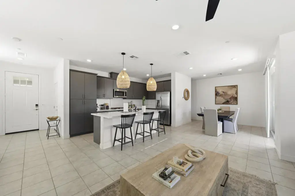 This beautifully furnished, two-story home in Palm Desert combines modern comfort, style, and everyday convenience. The main level features an open-concept layout with a spacious kitchen, dining area, and living room that flow effortlessly to a large covered patio, creating an ideal setting for indoor-outdoor living.Upstairs, a versatile loft provides additional living space alongside three bedrooms, including a spacious primary suite complete with a walk-in closet and a well-appointed ensuite bath.Situated in the sought-after University Park community, residents enjoy access to resort-style amenities including a community pool, parks, and expansive greenbelts. The home is also conveniently located near renowned golf courses such as Marriott’s Shadow Ridge, as well as popular destinations like The Living Desert Zoo, El Paseo, and Eisenhower Medical Center. Shopping, dining, a dog park, and a playground are all just minutes away.Offered as a seasonal rental with a three-month minimum at $4,000 per month, or as a long-term lease at $3,300 per month, this home is an excellent opportunity for anyone seeking a comfortable, turnkey residence in the heart of Palm Desert.