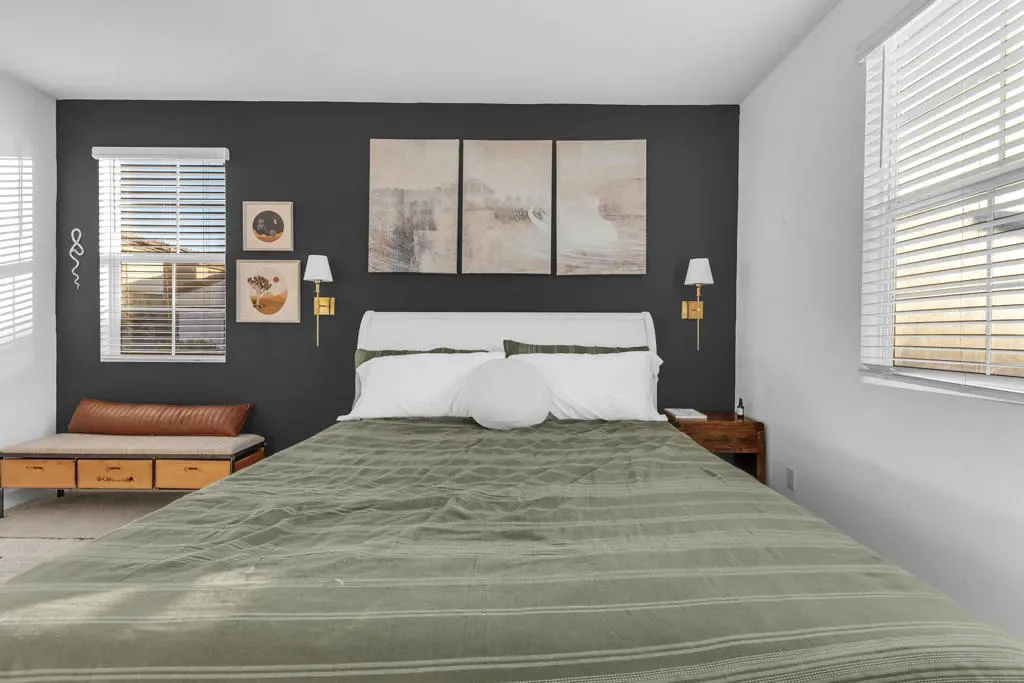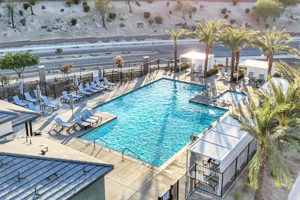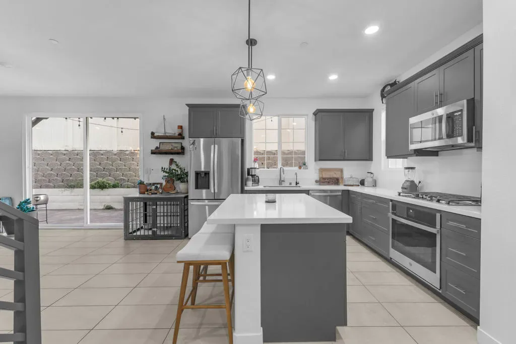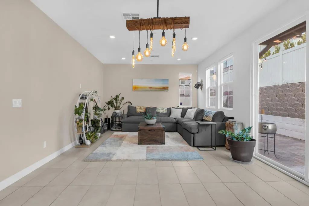 Modern 4-bedroom smart home with OWNED SOLAR in the highly sought-after University Park community. Stylish, chic, efficient, and move-in ready–this contemporary 4-bedroom smart home delivers the perfect blend of modern design and everyday comfort. The home showcases clean lines, an open-concept layout, and seamless indoor-outdoor living ideal for both relaxed living and entertaining. 4 bedrooms with one bedroom on the main floor for multi-generational living, private office or guest suite separate from the 3 bedrooms upstairs. The spacious primary suite offers a private retreat with a large walk-in closet, dual vanities, and a soaking tub designed for unwinding. All guest rooms are shown with virtual staging for reference.At the heart of the home, the chef-inspired kitchen features stainless steel appliances, a generous center island with bar seating, and effortless flow into the main living and dining areas–creating a true gathering space.Upgrades include fully paid solar for energy efficiency and a whole-home saltwater softener system delivering filtered water throughout–enhancing comfort while protecting plumbing and appliances.Step outside to a low-maintenance backyard with turf and patio space–perfect for pets, entertaining, or enjoying desert sunsets.Located in the highly desirable University Park community, residents enjoy resort-style amenities including large pool and lounging area, spa, BBQ area, firepit, dog park and all this included in LOW HOA of only $140/mo! Just minutes from Acrisure Arena, Cal State San Bernardino Palm Desert Campus, Eisenhower Medical Center, University Village, and the shopping and dining of El Paseo and The River. A standout opportunity for full-time living, rental income opportunity, seasonal use, or investment.