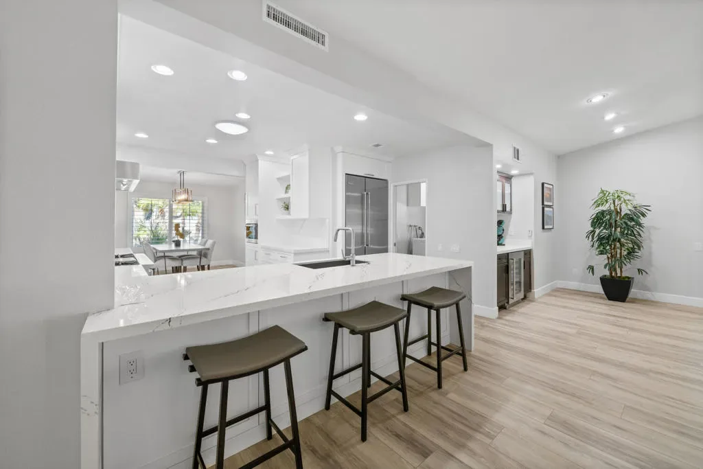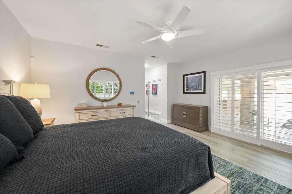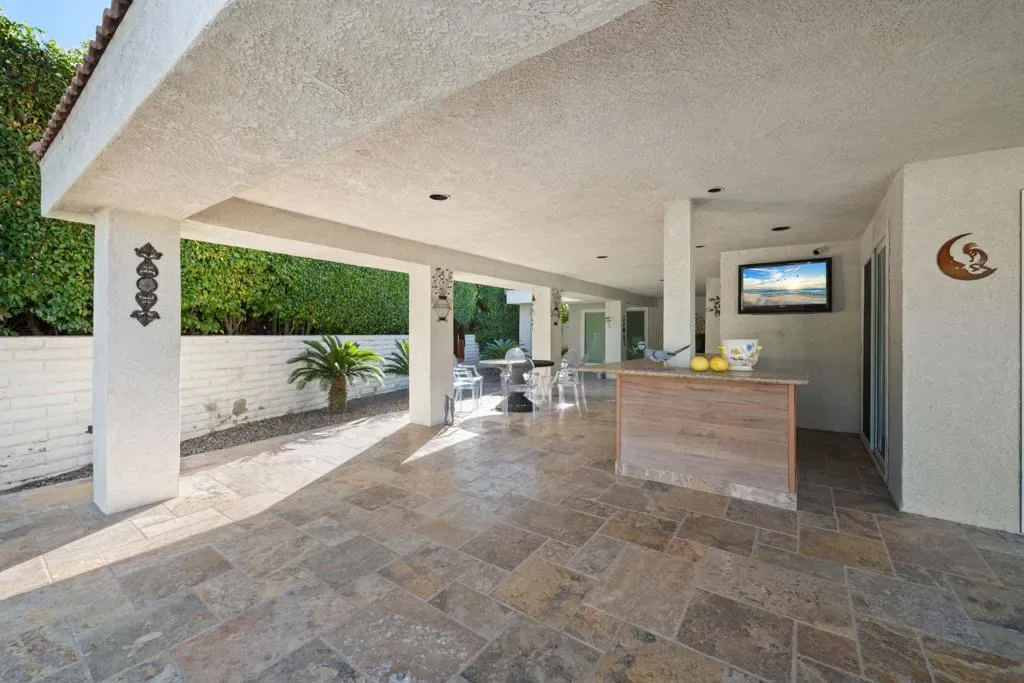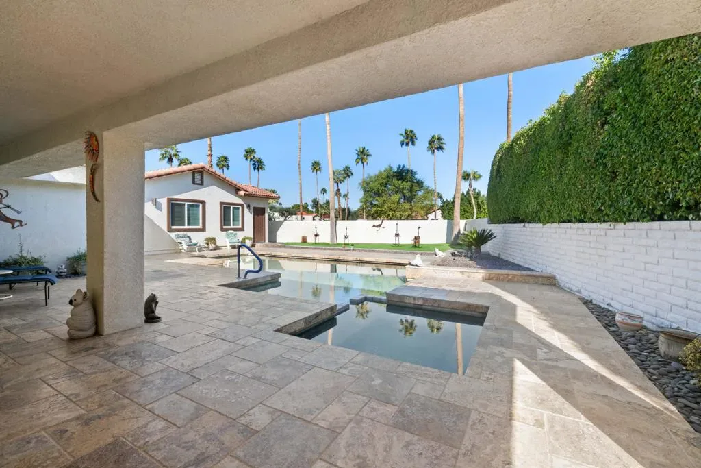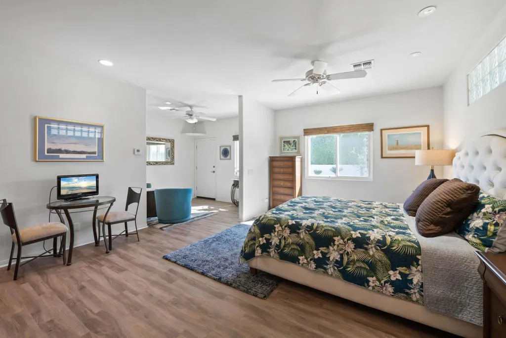 Relax, Refresh and enjoy blue skies and sunny days around the sparkling pool and spa. This Desert Jewel has been modernized combining luxury, quality and good design for maximum comfort. The living area, with vaulted ceiling, is an open floor plan for you, your family and guests to enjoy casual living and dining. You’ll LOVE the kitchen featuring a BlueStar 48” cooking range with double ovens, sleek custom cabinets, Quartz countertops and counter seating for easy entertaining. The adjacent Wet Bar has a wine cooler, sink and custom cabinets. Exquisite upgrades include Luxury Vinyl flooring, custom plantation shutters on energy efficient windows and sliding doors, California Closet storage with built-ins and 2 New HVAC [Jan 2026]. Multiple sliding glass doors offer easy access to enjoy the outdoors. The Primary bedroom offers privacy and a sumptuous Ensuite featuring unique Blue Bahia granite countertop, frameless glass walk-in shower and freestanding tub to capture a Spa-like experience. Two spacious guest bedrooms in the main house have been beautifully enhanced and share a sleek ensuite with custom finishes. The private, freestanding Casita offers almost 500 sq ft of comfort with the convenience of a kitchenette and sitting area that is perfect for family, guests or home office. Furnishings are available. A 3-car garage features epoxy flooring and Universal EV charger. Dine outdoors under a covered patio featuring a serving area with granite surface, a wall TV and lots of room for easy entertaining. Located within close proximity to the Clubhouse. The HOA includes 24 Hour Guard security, Cable TV and a Social Membership including dining, fitness, sport courts and social activities within the beautiful grounds and rich history of prestigious Avondale Country Club.