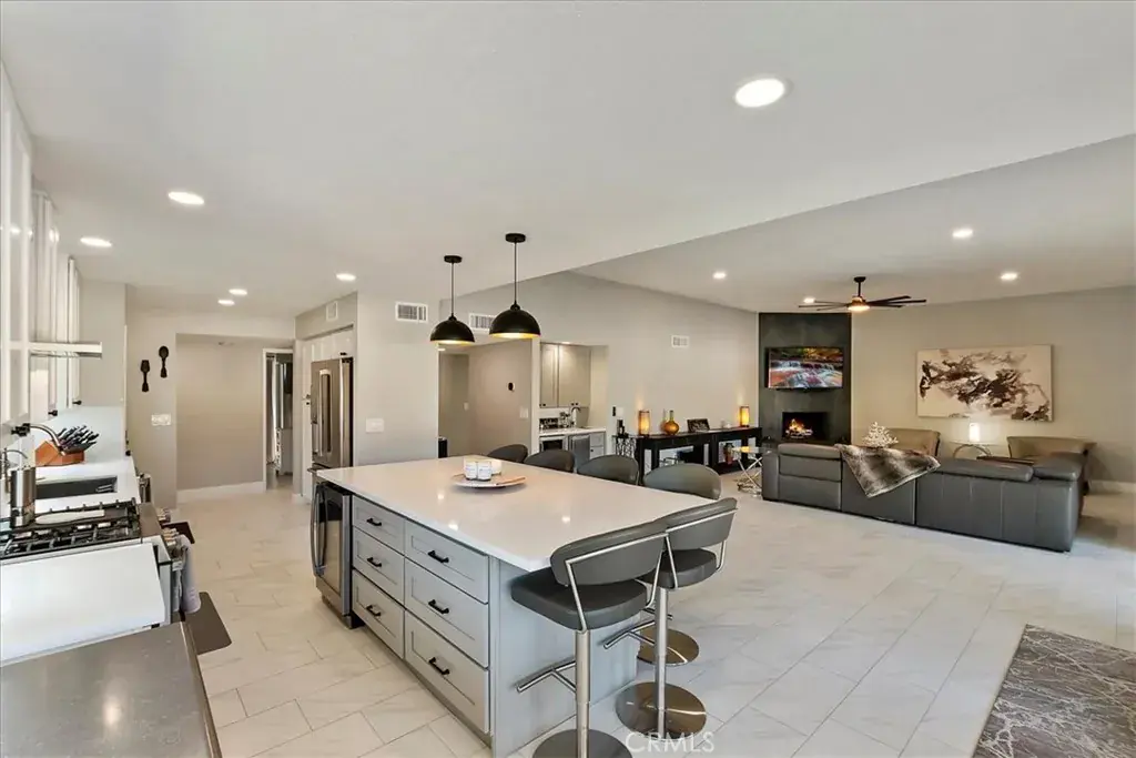 The heart of the home is the spacious great room and designer kitchen, featuring high-end smart appliances, a beverage cooler, and effortless flow for everyday living and entertaining. Just off the main space, you’ll find a stylish bar area with a wine fridge and built-in ice maker — perfect for hosting friends or enjoying a quiet evening in. A dedicated indoor laundry room and separate workspace add comfort and convenience that weren’t in the original design.