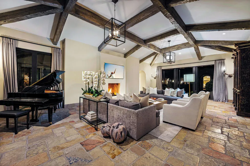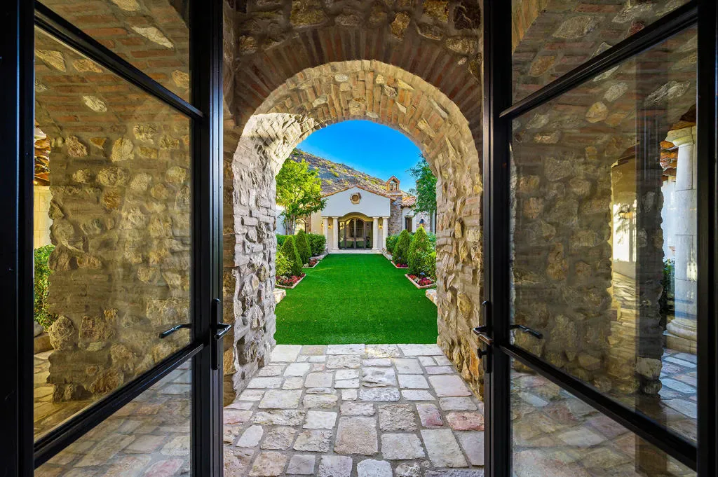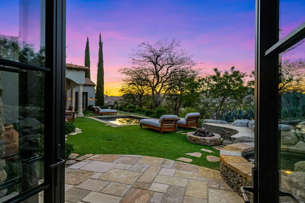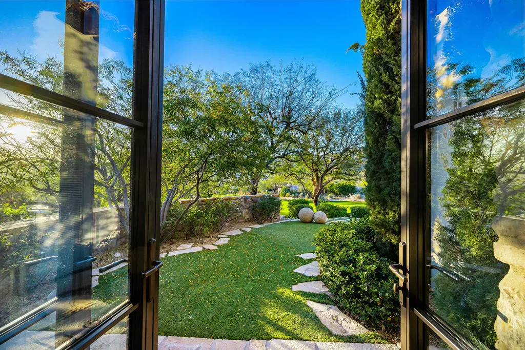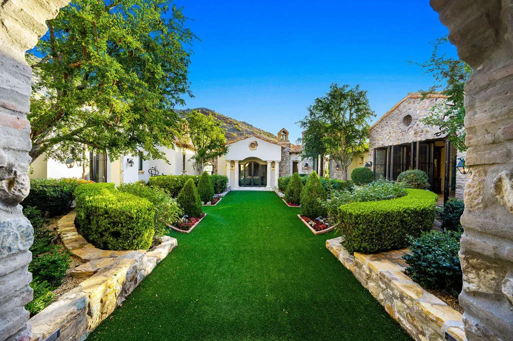 Old World Soul – Modern LuxuryRomantic in ambiance and rich in character, Casa Colibri – Hummingbird House, evokes the charm of an Italian countryside villa set against the serene desert landscape. Thoughtful craftsmanship and natural beauty blend seamlessly with contemporary comfort in this enchanting estate, named for the hummingbirds that frequent its lush gardens.A tiered garden path creates a stunning approach, leading to a dramatic entry with soaring vaulted ceilings, a custom river rock mosaic floor, and reclaimed European stone flooring that sets the tone for the home’s authenticity. The living room is warm and sophisticated, featuring a beam-accented ceiling, contemporary stone fireplace, and expansive views of the outdoor living spaces. A stylish wet bar with custom glass shelving and refrigeration enhances both indoor and outdoor entertaining.The gourmet kitchen is designed for gathering, anchored by an oversized Carrara marble prep table, dual farmhouse sinks, high-performance appliances, and generous workspaces. A butler’s pantry, dining room with fireplace, and nearby media room create seamless flow, with direct access to outdoor living and barbecue areas. A comfortable family room offers a relaxed setting with media, surround sound, and patio access.Outdoor living is exceptional, with multiple rooms opening to expansive terraces overlooking the 10th fairway of the Mountains Course. Features include custom teak furnishings, fireplace with integrated TV, manicured turf, and a classic pool and spa with cascading waterfall and pool bath.The privately situated primary suite opens to the pool and patio, featuring English oak flooring, wood beam ceilings, and a spa-like bath with freestanding soaking tub, dual vanities, walk-in closet, and clerestory windows with mountain views. A nearby study includes a fireplace, morning bar, and fairway views.Three charming cottage-style guest suites surround the home’s lush central courtyard garden, each with private entrance and bath; two offer private patios. Additional highlights include Control4 automation, a courtyard ideal for bocce, elevated cul-de-sac location with southern exposure, sweeping mountain views, a three-car garage, and separate two-golf-cart garage. Casa Colibri is a rare expression of European romance and desert luxury, an inviting retreat where timeless design, thoughtful craftsmanship, and natural beauty come together in perfect harmony. The perfect escape.
