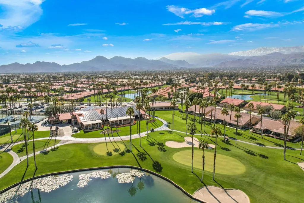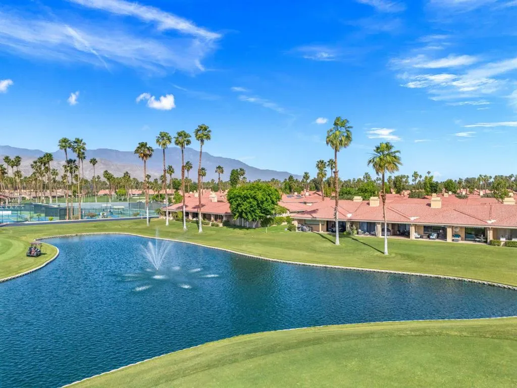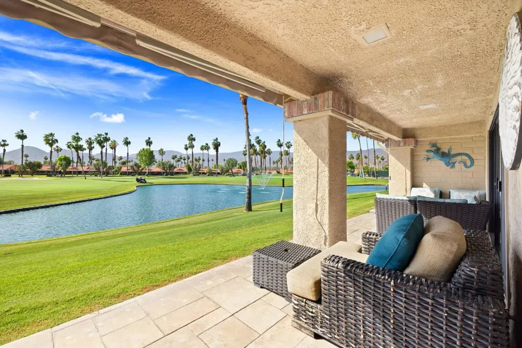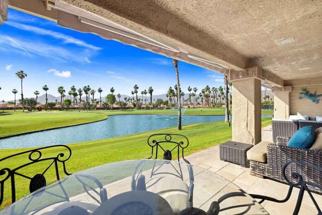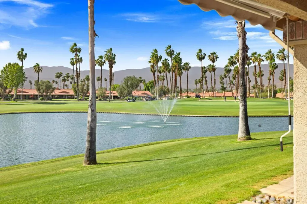 Step into a rare opportunity to own a condo at Chaparral Country Club that truly stands apart. Unlike most units where views are limited to the kitchen or side windows, this residence boasts a direct and panoramic perspective of the shimmering lake, emerald fairways, and majestic mountains–all framed perfectly from the primary living areas. Set on a coveted elevated lot, you’ll enjoy an enhanced sense of privacy and a superior vantage point overlooking the 5th and 6th fairways of the prestigious Ted-Robinson designed golf course. Best of all, this home is thoughtfully positioned away from the golf cart path, ensuring your peaceful desert afternoons remain quiet and undisturbed. This isn’t just a view; it’s a FRONT ROW SEAT to some of the desert’s most iconic scenery. Spanning approximately 2,011 square feet, this upgraded 3-bedroom, 3-bath residence combines comfort and sophistication. The modern kitchen is a standout feature, complete with sleek quartz countertops, high-end stainless steel appliances, and beautifully crafted cabinetry with a seamless soft-close system for quiet functionality. The bathrooms offer a spa-like experience with contemporary upgrades, including a steam shower system in the guest bath designed for relaxation and rejuvenation. The open-concept living area features motorized blackout shades, perfect for a true home-cinema experience, while radiant-heat tile flooring provides everyday comfort. A thoughtfully integrated Murphy bed in the living room adds versatility & functionality, ideal for accommodating guests without compromising space or style. Enjoy endless hot water with a high-efficiency tankless system newly installed in early 2026. This condo is ideally located just steps from the pool/spa, and close to the clubhouse, tennis courts, and 16 pickleball courts. Chaparral Country Club offers an exceptional lifestyle with HOA benefits that include cable and internet, exterior maintenance and roof coverage, professional landscaping, gated security, and access to multiple pools and spas throughout the community. Ownership includes a social membership with a monthly fee, providing access to the clubhouse, fitness center, dining options, and a vibrant calendar of social activities–enhancing the true resort-style living experience. A sanctuary defined by light/landscape, this home offers a serene backdrop for both quiet relaxation and entertaining. A truly special opportunity in one of Palm Desert’s most sought-after communities.