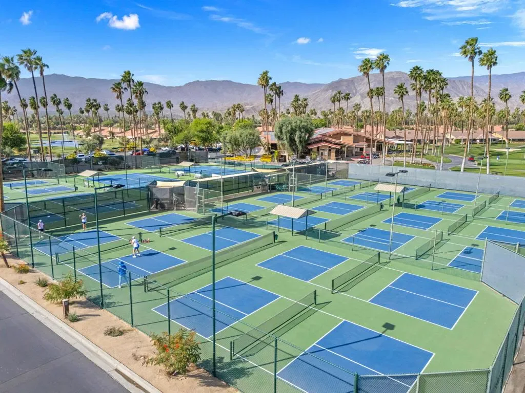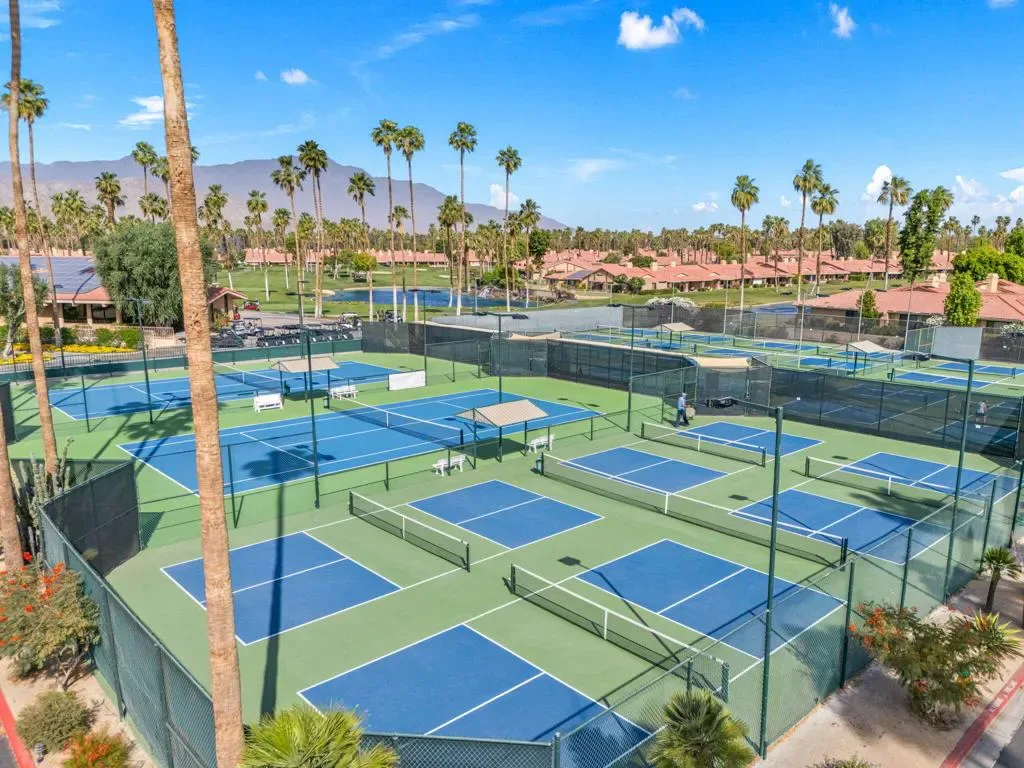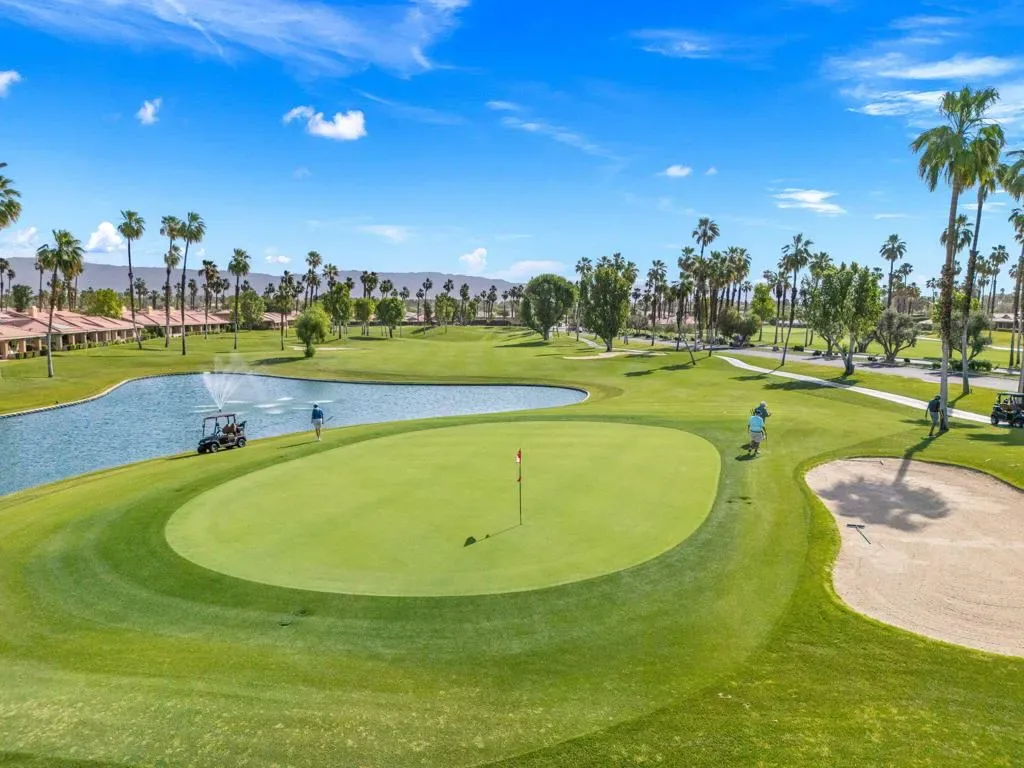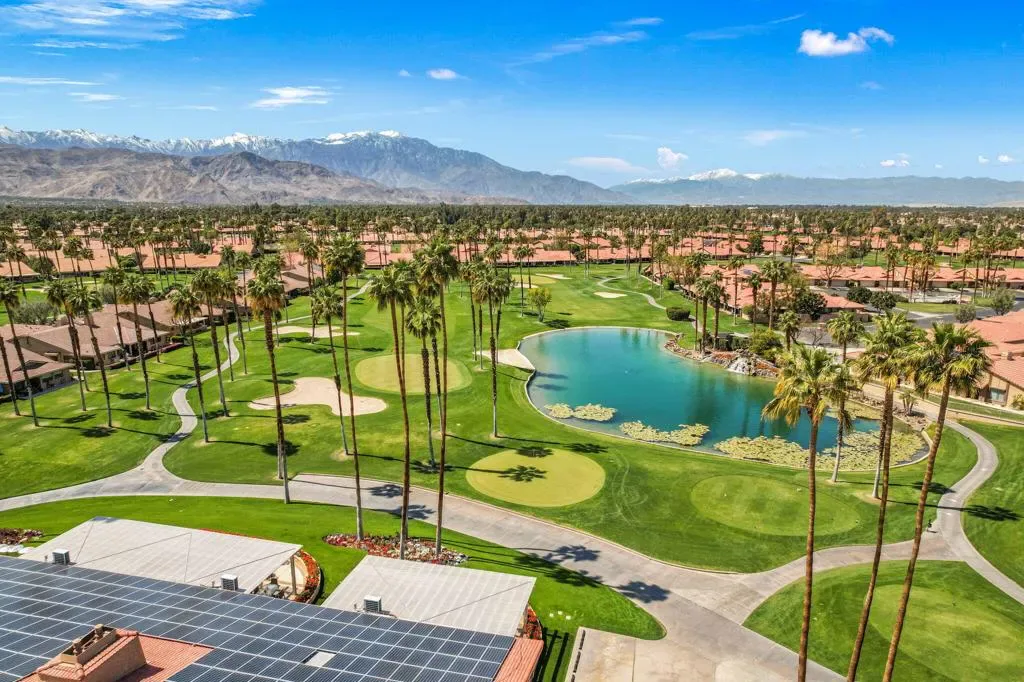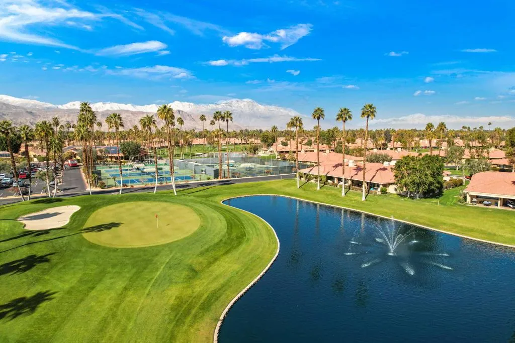 Step into a rare opportunity to own a condo at Chaparral Country Club that truly stands apart. Unlike most units where views are limited to the kitchen or side windows, this residence boasts a direct and panoramic perspective of the shimmering lake, emerald fairways, and majestic mountains–all framed perfectly from the primary living areas. Set on a coveted elevated lot, you’ll enjoy an enhanced sense of privacy and a superior vantage point overlooking the 5th and 6th fairways of the prestigious Ted-Robinson designed golf course. Best of all, this home is thoughtfully positioned away from the golf cart path, ensuring your peaceful desert afternoons remain quiet and undisturbed. This isn’t just a view; it’s a FRONT ROW SEAT to some of the desert’s most iconic scenery. Spanning approximately 2,011 square feet, this upgraded 3-bedroom, 3-bath residence combines comfort and sophistication. The modern kitchen is a standout feature, complete with sleek quartz countertops, high-end stainless steel appliances, and beautifully crafted cabinetry with a seamless soft-close system for quiet functionality. The bathrooms offer a spa-like experience with contemporary upgrades, including a steam shower system in the guest bath designed for relaxation and rejuvenation. The open-concept living area features motorized blackout shades, perfect for a true home-cinema experience, while radiant-heat tile flooring provides everyday comfort. A thoughtfully integrated Murphy bed in the living room adds versatility & functionality, ideal for accommodating guests without compromising space or style. Enjoy endless hot water with a high-efficiency tankless system newly installed in early 2026. This condo is ideally located just steps from the pool/spa, and close to the clubhouse, tennis courts, and 16 pickleball courts. Chaparral Country Club offers an exceptional lifestyle with HOA benefits that include cable and internet, exterior maintenance and roof coverage, professional landscaping, gated security, and access to multiple pools and spas throughout the community. Ownership includes a social membership with a monthly fee, providing access to the clubhouse, fitness center, dining options, and a vibrant calendar of social activities–enhancing the true resort-style living experience. A sanctuary defined by light/landscape, this home offers a serene backdrop for both quiet relaxation and entertaining. A truly special opportunity in one of Palm Desert’s most sought-after communities.