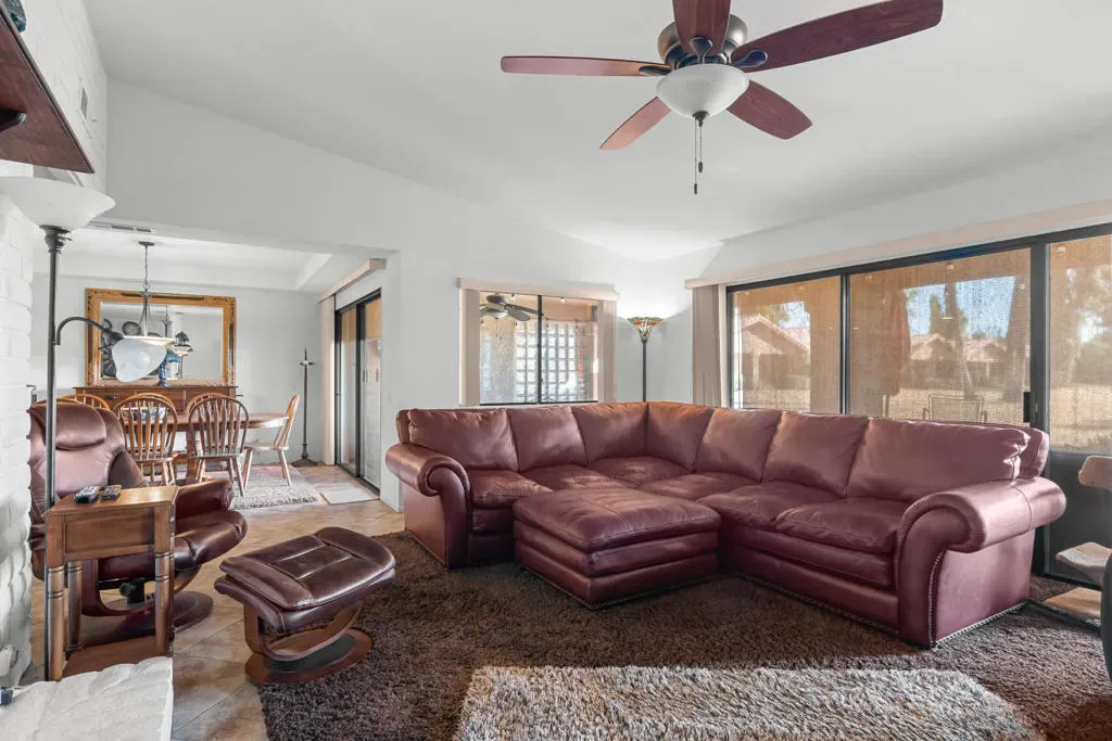 Welcome to the PRESTIGIOUS CHAPARRAL CC in Palm Desert! This is an upscale 24-hr Guard Gated Community with a PRIVATE 18-hole EXECUTIVE GOLF COURSE. IT is centrally located & close to El Paseo that has an array of upscale SHOPS & RESTAURANTS! CHAPARRAL CC HAS A VERY ACTIVE CLUBHOUSE with an abundance of SOCIAL ACTIVITIES. There are tennis courts, pickleball, 21 pools/spas, & a fabulous restaurant with a chef of 20+ yrs! This 3 bedroom/2 bath home is one door away from the community pool/spa. It has a 2 car garage, remodeled kitchen with granite countertops, family room with vaulted ceilings & a fireplace for those cool winter evenings! The home has Solar Panels that are owned, not leased, providing a very, very low electricity bill. New ducting throughout home, newer large capacity hot water heater; added glass block privacy wall on patio. Total HOA Dues $1,317/mo – HOA (1) $850 & HOA (2) Social Membership $412. (3) $100 special assessment as of 7/1/2025 to Country Club ***SELLER MOTIVATED, BRING OFFERS!