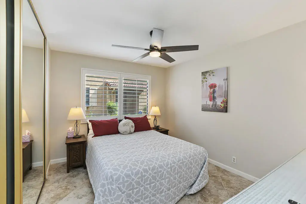 RENOVATED AND FURNISHED! This beautifully designed 3 bedroom, 2 full bath home with the much sought after 3rd car garage, offers 1759 square feet of effortless living with an ideal balance of space and location. Highlighting the living area is an upgraded kitchen with granite counter tops, stainless steel appliances and recessed lighting. The large living area is light and bright and flows seamlessly onto the tiled patio just steps from one of the 21 pools. The primary suite and second bedroom are perfectly separated and the 3rd bedroom is converted to an office with a convertible sofa making it an ideal retreat for homeowners and guests alike. With numerous updates including remodeled bathrooms, new cabinets and ceiling fans, diamond pattern tile floors, solar tubes, high end shutters and roller shades all combine to make this is the perfect blend of golf course luxury and Palm Desert convenience. Whether you’re an avid golfer, a relaxation enthusiast, or someone who loves being close to world-class dining and shopping, this home delivers it all. Located in the heart of Palm Desert, Chaparral offers 18 holes of affordable, challenging golf, 21 pools & spas, tennis, pickle-ball, a fully equipped fitness room, activity center, pool and card tables and a remodeled clubhouse with world-class dining and entertainment. All Buyers to pay $5000 at closing for Capital Reserve Fund. Special Assessment of $100/mo as of 7/1/2025 to Country Club.