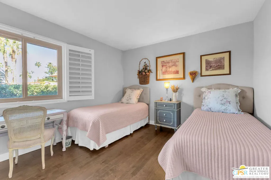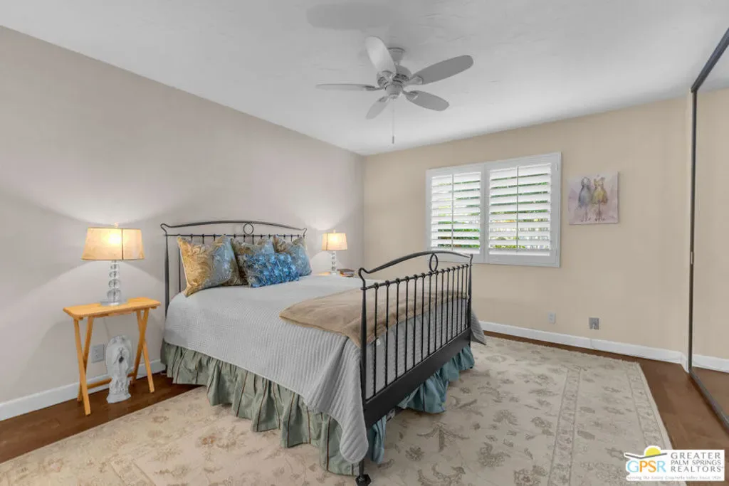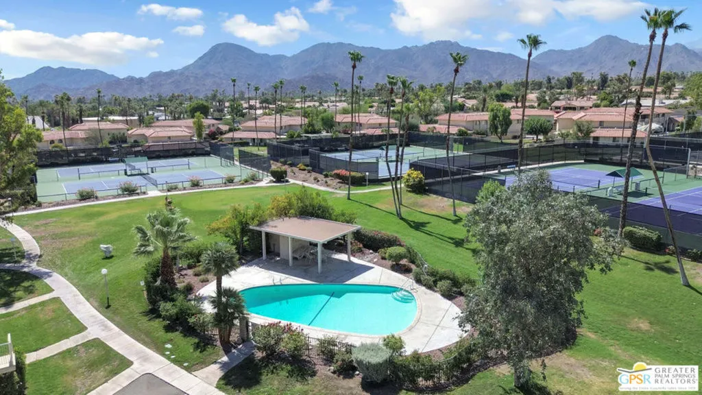 Welcome to your desert retreat in Deep Canyon Tennis Courts, a gated oasis in the heart of South Palm Desert just minutes from El Paseo. Rarely available, this true 3 bedroom, 2 bath residence is entirely single level with no stairs, a highly sought after feature within the community. Offering nearly 1,200 square feet of thoughtfully designed living space, the home is wrapped in a charming French-inspired cottage aesthetic that feels warm, inviting, and timeless. The floor plan is both comfortable and efficient, with replaced windows and sliding doors that bring in natural light while adding energy efficiency. Enjoy beautiful mountain views and a very private patio, perfect for morning coffee, quiet evenings, and watching hummingbirds pass by. Beyond the home, Deep Canyon Tennis Courts offers a resort-style lifestyle that is hard to match. Residents enjoy multiple tennis and pickleball courts, bocce ball, a putting green, and a beautifully remodeled clubhouse with an active social calendar. Community garden plots offer a rare opportunity to grow your own fruits and vegetables. All of this is set within a secure gated community known for its peaceful atmosphere and prime South Palm Desert location near El Paseo, dining, shopping, and scenic hiking trails. If you have been waiting for a single-level 3 bedroom opportunity in Deep Canyon, this is one you do not want to miss. Now offered at an even more compelling value. Schedule your private showing today.