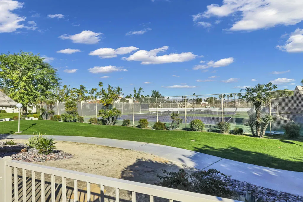 Discover this beautifully refurbished, single-level home situated in the well-kept, gated community of Desert Breezes. This residence offers a serene, private, and immaculate environment, both inside and out. The home features three bedrooms and two bathrooms, a spacious living area exceeding 1,500 square feet, and an attached two-car garage. Enjoy effortless access to tennis and pickleball courts, a pool, clubhouse, and jacuzzi right behind the back patio. Desert Breezes boasts a central location, providing easy proximity to schools, shopping, dining, and entertainment options. Additionally, it’s just a short stroll to the Indian Wells Tennis Garden!