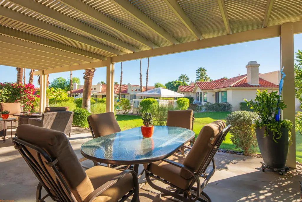 Experience the desert lifestyle at its finest…from the moment you enter the beautiful front courtyard, skillfully created by a master gardener, you’ll be delighted with the amenities this property offers…tastefully remodeled in soothing neutral tones…kitchen complete with Cambria counters, stainless appliances including a beverage cooler…Interior paint and updated flooring adds to the newly refreshed design…upgraded windows and HVAC system all add to the energy efficiency of this property…Spacious back patio for entertaining with easy access to one of the neighborhood pools…Desert Falls offers a world class championship links golf course with membership or daily rates…included in your HOA fees is access to a complete fitness center, tennis and popular pickleball activities…Conveniently located to El Paseo dining and shopping as well as the Acrisure arena…This wonderful property checks all the boxes…