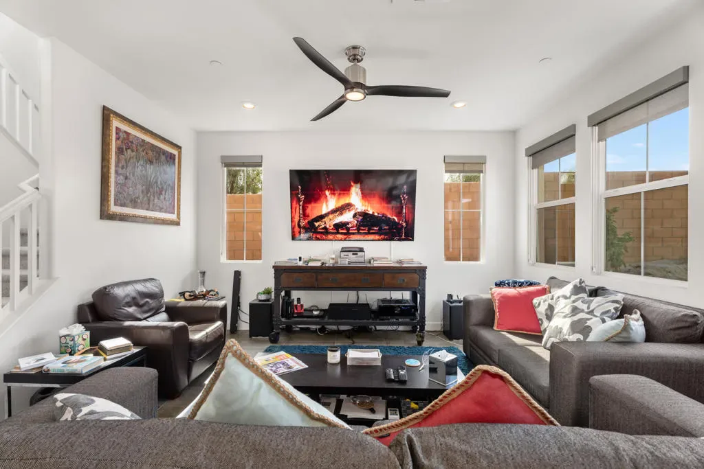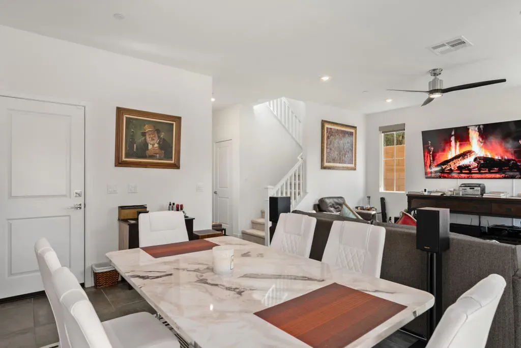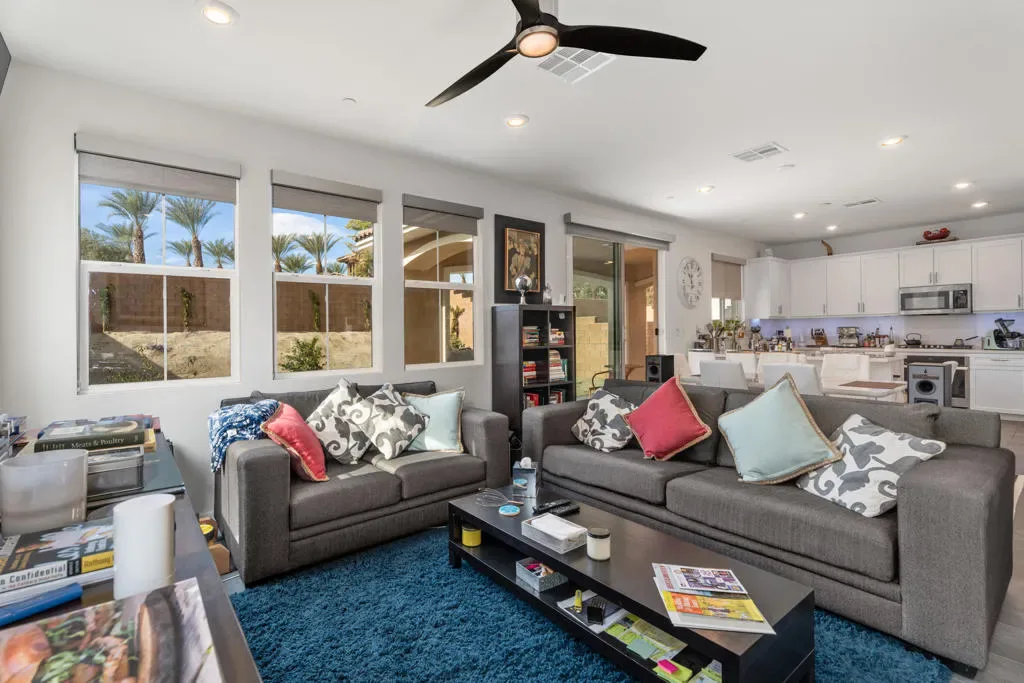 Welcome to the highly desirable Dolce Community! Amazing opportunity to lease this beautiful home with solar.Situated on a prime corner lot in this gated neighborhood, the home offers unbeatable convenience–just steps from the community pool and park entrance. The west-facing backyard captures breathtaking views of Mt. San Jacinto and the Shadow Mountains, creating the perfect desert retreat.Inside, the open-concept design seamlessly connects the kitchen, dining, and living spaces to the private patio–ideal for entertaining or everyday living. The chef’s kitchen boasts quartz countertops, upgraded tile flooring, stainless steel GE appliances, and upgraded blinds, with ample counter space and storage.This two-story home features 3 bedrooms, 2.5 bathrooms, a dedicated office or a flexible loft space or second living area. The spacious primary suite includes a walk-in closet and ensuite bathroom with quartz countertops, dual vanities, a large shower, and a private water closet.The Master bedroom has unparallel privacy with no neighbors next to or behind. Additional highlights include:Remote-controlled, lighted ceiling fans in the great room, office, and all bedroomsA serene, fully fenced backyard with fruit trees, herb garden, wall foliage, and covered patio. Two-car garageExtremely cheap utilities as owner is covering solar cost. Owner is also covering HOA fees.Home comes with virtually new washer and dryer.Pictured furnished, but is vacant ready for immediate move in.Prime centrally located, close to everything.Discount for a 2 year lease.