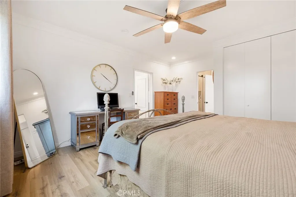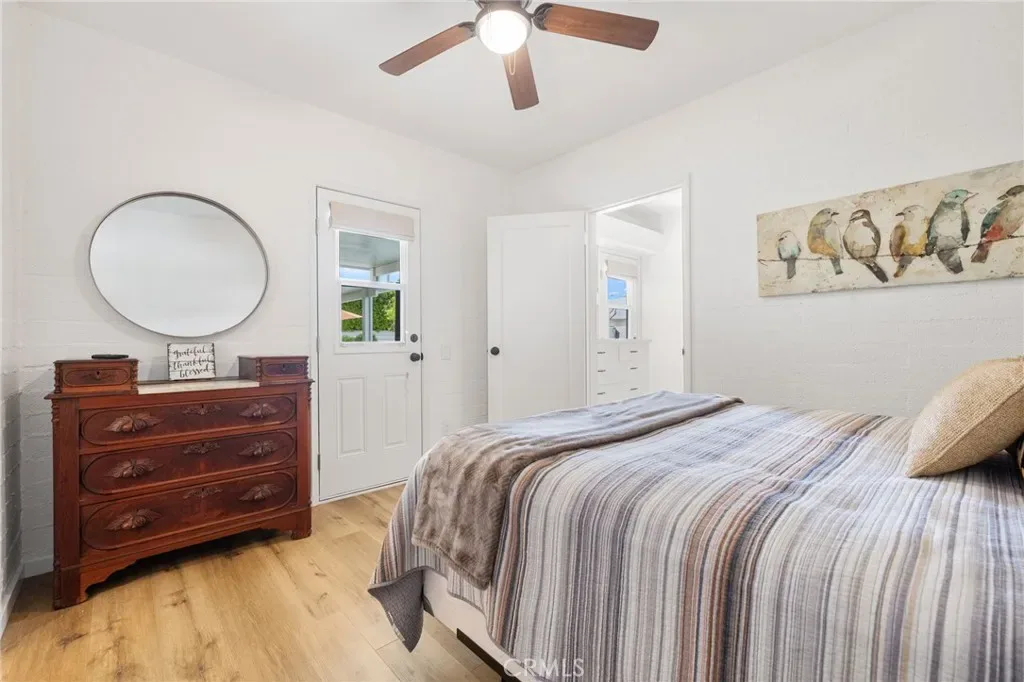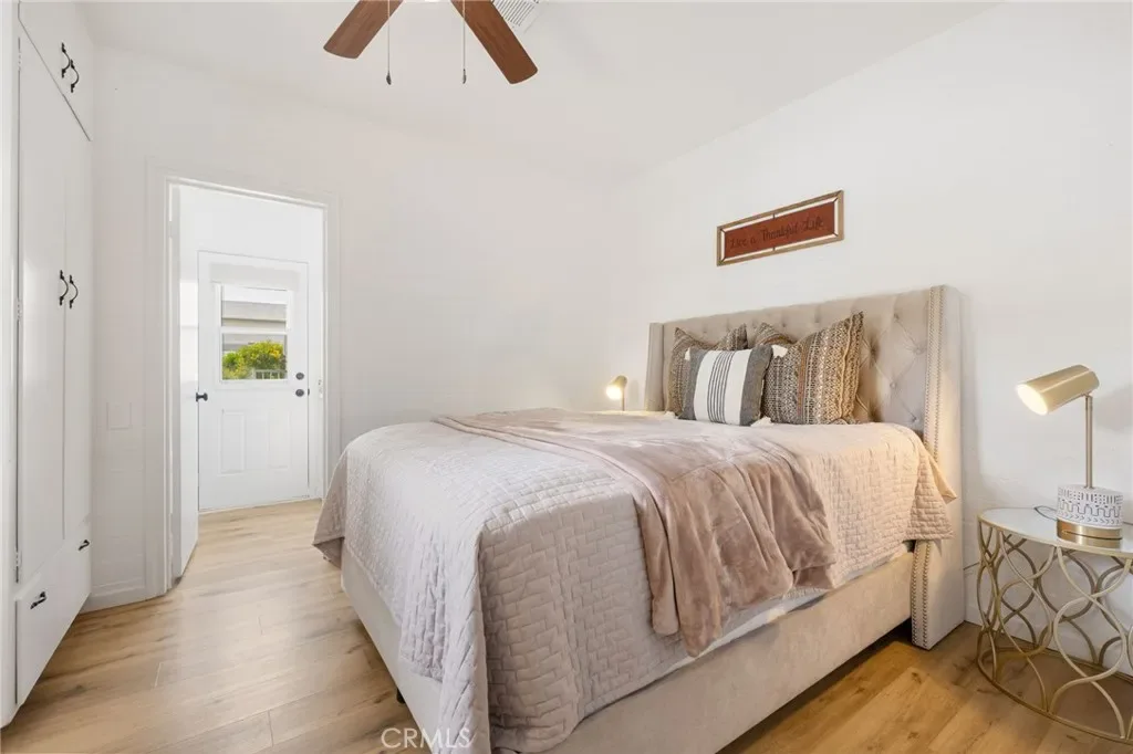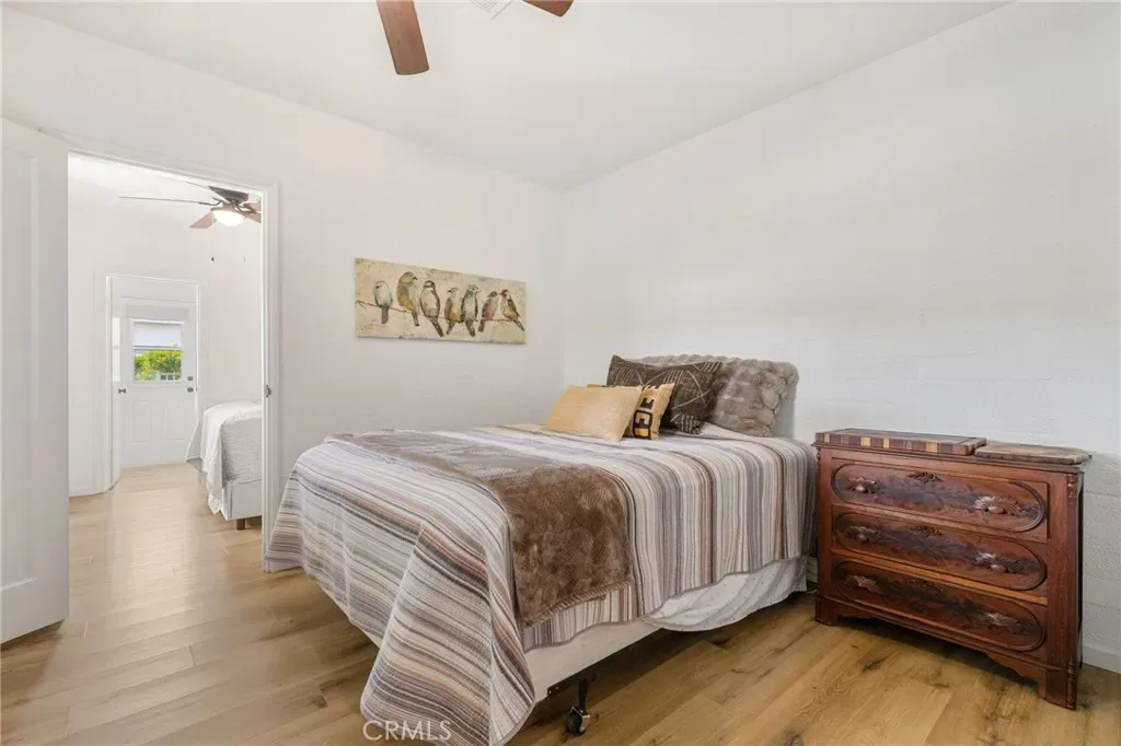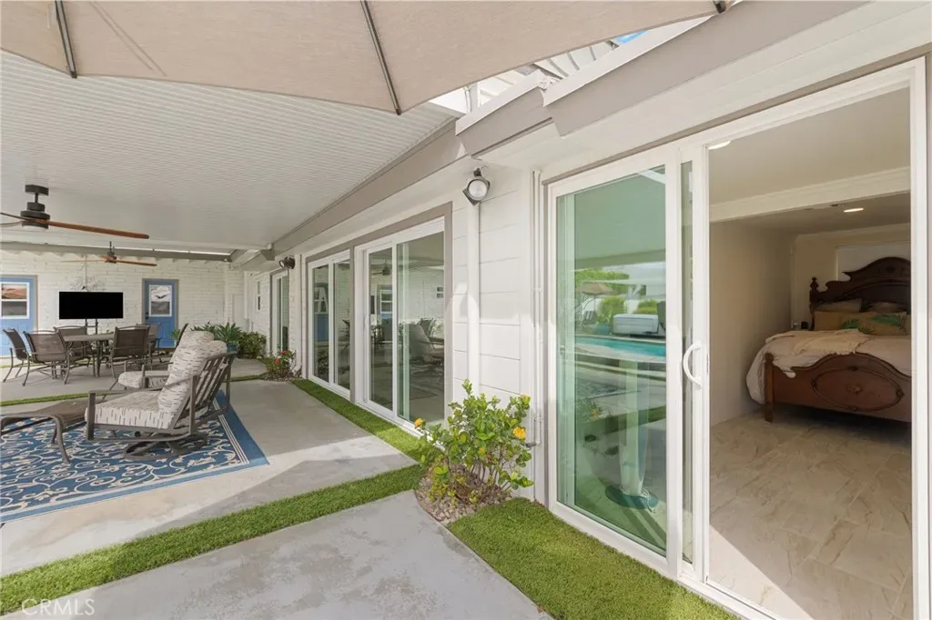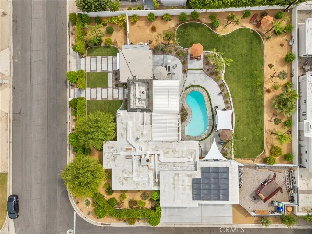 This property was meticulously renovated in 2021 including: Interior – all new windows, window coverings, glass sliding doors, laminate and tile flooring, expanded and rebuilt new kitchen and three bathrooms, interior paint throughout, LED lighting, ceiling fans, switches and receptacles. Exterior – new exterior paint, overhead electrical was placed underground, solar panels added and fully paid, exterior block walls and locking gates added, newly built four car garage, RV storage yard, new oversized awnings in backyard patio, full landscaping in both front and backyards with expansive grass, mature trees and flowering plants, new pool coping, new stand-alone hot tub, and newly foamed roof. The two new garages are 1050 square feet total. The approximate dimensions are as follow – Garage on Left: 24’7’W x 24’3″L x 9’H, Garage on Right: 22’3″W X 20’8″L X 9’H Both Garage Doors: 16’W X 8’H