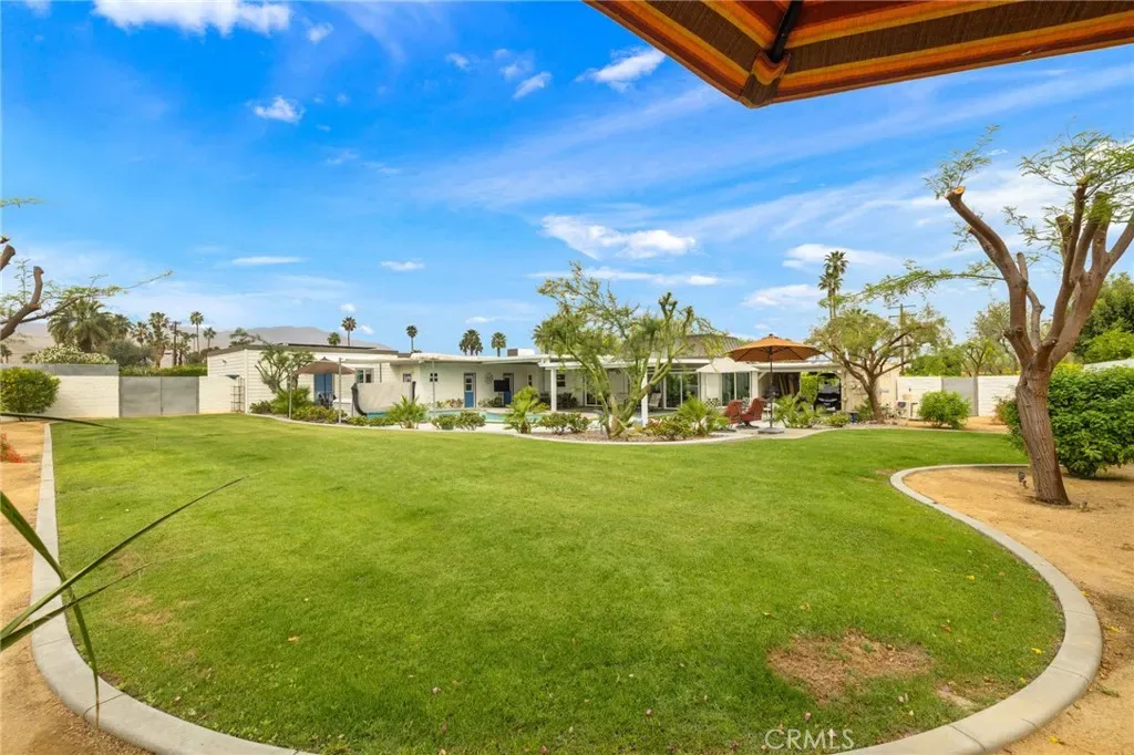 A rare mid-century estate, formerly the residence of Donald P. Kennedy, renowned philanthropist and influential proprietor of First American Title Company. This stunning four-bedroom, 3-bathroom estate is beautifully situated on nearly half an acre of meticulously manicured grounds, featuring a sparkling pool, expansive yard, a newer four-car garage perfect for a car enthusiast, and a separate golf cart garage with its own private double-gated entrance. Panoramic, snow-capped views of the San Jacinto Mountains, including San Gorgonio, the Santa Rosa Mountains and the Little San Bernardino range, create a breathtaking backdrop. Ideally located within walking distance – or a short golf cart ride- to the Shops at El Paseo, often haled as the ‘Rodeo Drive of the Desert,’ this estate offers the perfect blend of historic significance, luxury, and quintessential Palm Desert lifestyle.
