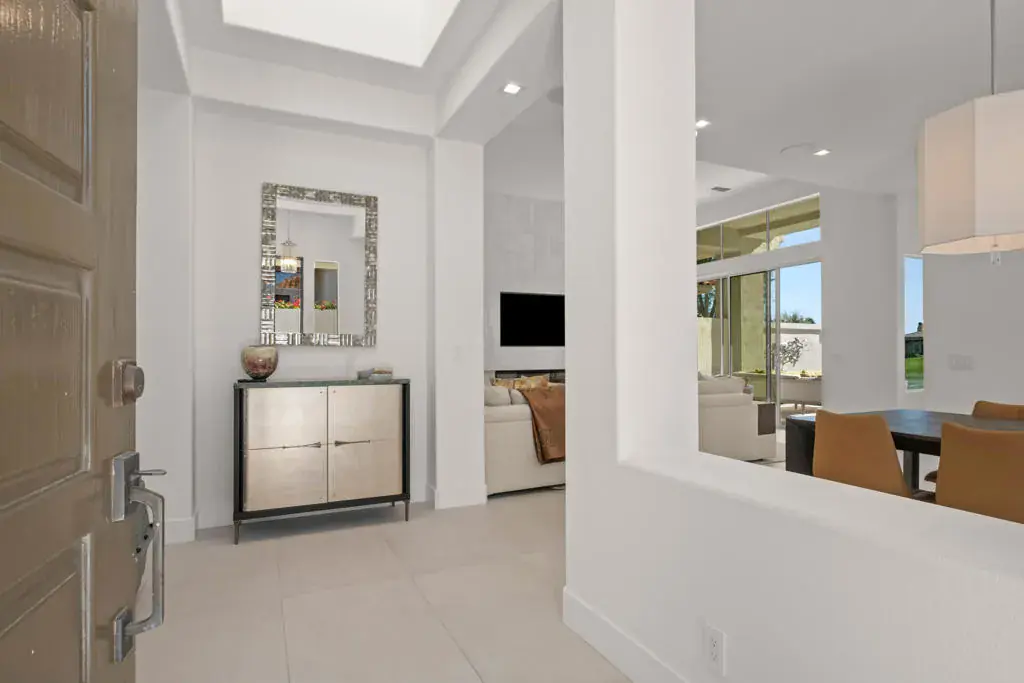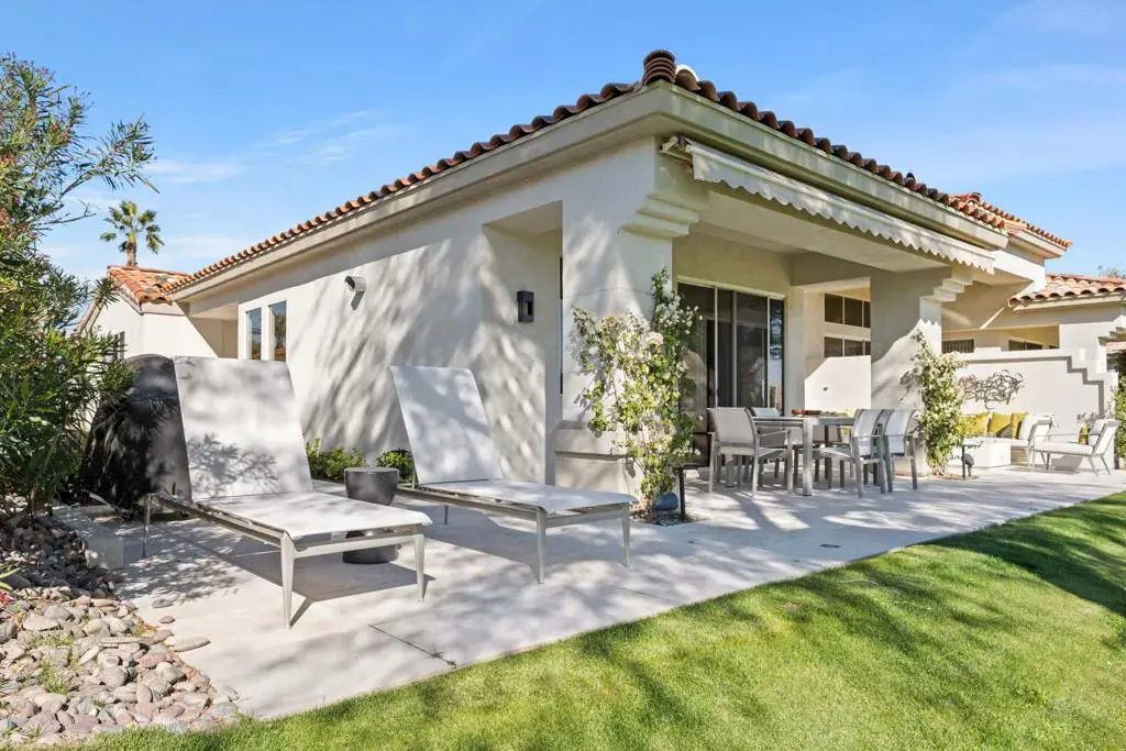 Available May 21, 2026 – December 15, 2026, dates flexible. Contact agent to inquire on 2026-2027 seasonal lease rates. Welcome to this beautifully remodeled and uniquely expanded Acacia 4, boasting over 2200sf with 3 bedrooms and 3.5 bathrooms. The home has been meticulously renovated with the highest quality products and furnishings for the finest in desert living. You will enjoy the fully tiled interior and exterior south facing patio with built-in gas firepit and beautiful outdoor landscape and lighting. One guest bedroom features double queen America leather system built in sleepers as well as a beautiful home-office/entertainment system. Both the master and 2nd guest bedroom enjoy king beds and all bedrooms enjoy ensuite remodeled baths. The home is equipped with new TVs, contemporary glass skylights, electric fireplace, HVAC systems are energy efficient heat pumps plus gas tankless water heater, and so much more. Located across the street from the neighborhood pool and hot tubs and walkable to fitness center, club house and tennis/ Pickleball courts with the option for tenant to pay for use of owner’s membership with 3 month minimum rental and membership approval. Use of Owners golf cart is permitted with appropriate waiver and hold harmless.