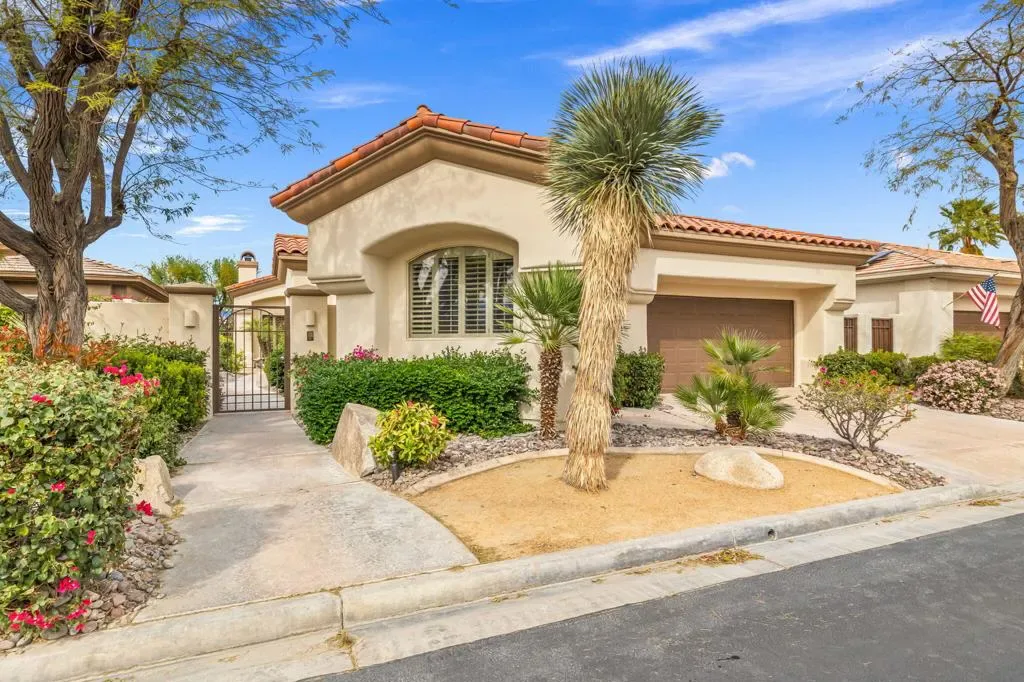 First time ever on the market! A rare opportunity to own a Bougainvillea 2 floor plan that has never before been offered for sale. Welcome to 450 Gold Canyon in the prestigious Indian Ridge Country Club.Featuring 3 bedrooms, 3.5 bathrooms, and 2,742 square feet, this home presents an incredible opportunity to transform the space into a beautiful and stylish desert retreat tailored to your personal vision. Thoughtfully refreshed with new carpet, fresh interior paint, LED lighting, updated toilets, and new appliance package, the home is move-in ready while offering the perfect foundation for further customization. Step outside to an expansive backyard overlooking the 9th hole of the Arroyo Course, where tranquil golf course, water and mountain views create the ideal setting for relaxed desert living. The generous outdoor space offers endless potential to design your dream entertaining area–with ample room to add a pool, spa, fire features, or a stunning outdoor lounge.Indian Ridge is celebrated for its vibrant country club lifestyle, featuring two Arnold Palmer-designed golf courses, tennis, pickleball, fitness, dining, and a lively social calendar. Golf membership is available through the club’s current waitlist, giving future owners the opportunity to enjoy the full club experience. An exceptional chance to create your dream home in one of Palm Desert’s most sought-after private golf communities.