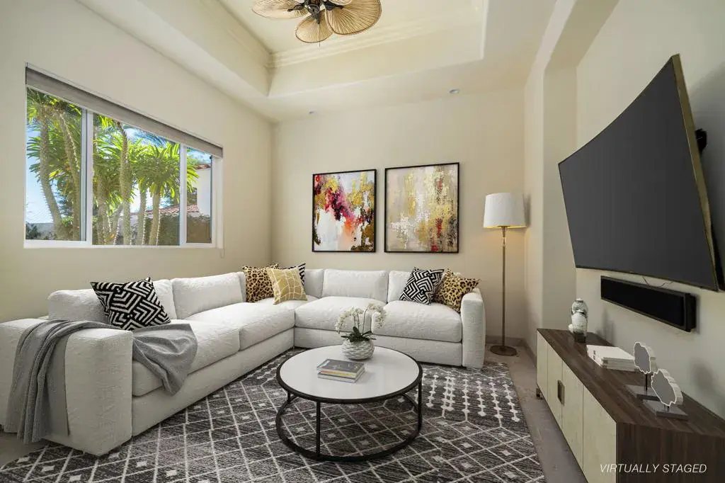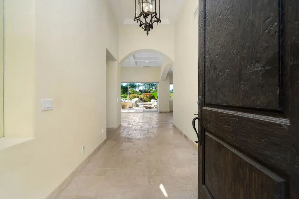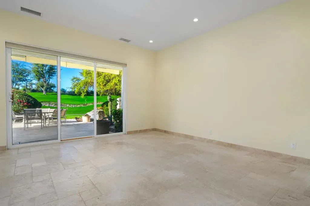 SELLER IS MOTIVATED! Private Spa & Mountain Views! BRAND-NEW A/C SYSTEM! This west-facing Bougainvillea 2 home at Indian Ridge Country Club was the original model, in a prime location near the Clubhouse and premier amenities of Indian Ridge CC. Offering 3 bedrooms and 3.5 bathrooms, this light & bright home features an inviting open-concept floor plan and west-facing mountain and Grove #1 course views. Redesigned with a dramatic coffered ceiling and custom molding – the pony walls, columns and soffits have been removed, enhancing the home’s open & airy layout. Stone flooring throughout the home (no carpet!) The living room, dining area, and open kitchen are filled with natural light and flow seamlessly to the patio spa, creating a true indoor-outdoor lifestyle. Outside, enjoy a private fairway patio with multiple lounging and dining areas, retractable awnings, a spa with water features, and a built-in BBQ – ideal for entertaining or just enjoying the course & mountain views. The European-inspired kitchen is a standout, featuring exquisite woodwork, a large center island with seating, an enclosed pantry, and a gorgeous La Cornue CornuFe range. Just off the foyer is a private den/library with custom built-ins, perfect for a home office or quiet retreat. The spacious primary suite includes two closets (including a generous walk-in) and a remodeled spa-style bathroom with a soaking tub and open shower. Two en suite guest rooms provide comfort and privacy – both guest bathrooms have also been thoughtfully updated. The 2-car + golf cart garage provides direct access into the home. Club Membership is available to the Buyer with no wait (Golf membership available by waitlist – contact us for details). Indian Ridge CC features two Arnold Palmer Signature golf courses, tennis/ pickleball facilities, a fitness center, a full-service spa, two restaurants, 38 community pools/spas & active social calendar. Come Join the Fun! (NOTE: Some of the photos have been Virtually Staged to show furnishings in the home).